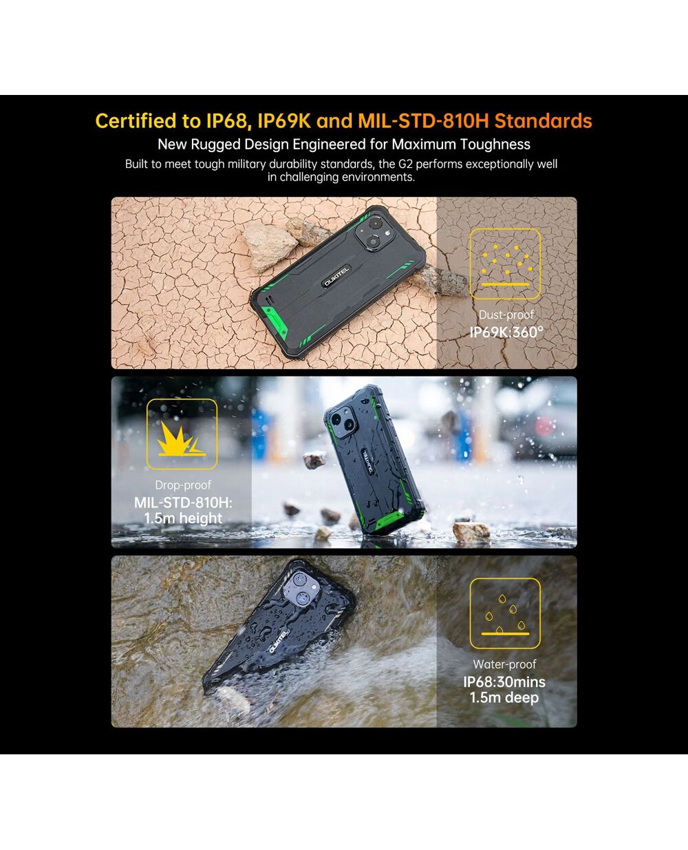 Με πιστοποίηση IP68/IP69K και πρότυπο MIL-STD-810H, το G2 είναι σχεδιασμένο για να αντέχει σε ακραίες συνθήκες χρήσης και περιβάλλοντα.