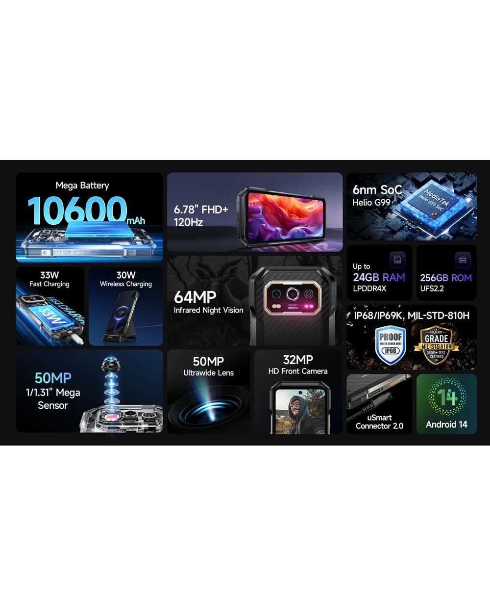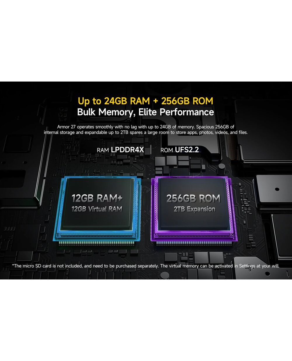 ULEFONE smartphone Armor 27, 6.78", 12/256GB, 10600mAh, IP68/IP69K, μαύρο