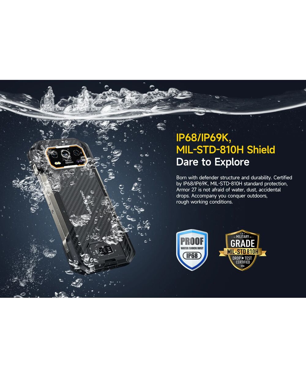 Με πιστοποίηση IP68/IP69K και πρότυπο MIL-STD-810H, το Armor 27 είναι σχεδιασμένο για να αντέχει σε ακραίες συνθήκες χρήσης και περιβάλλοντα.
