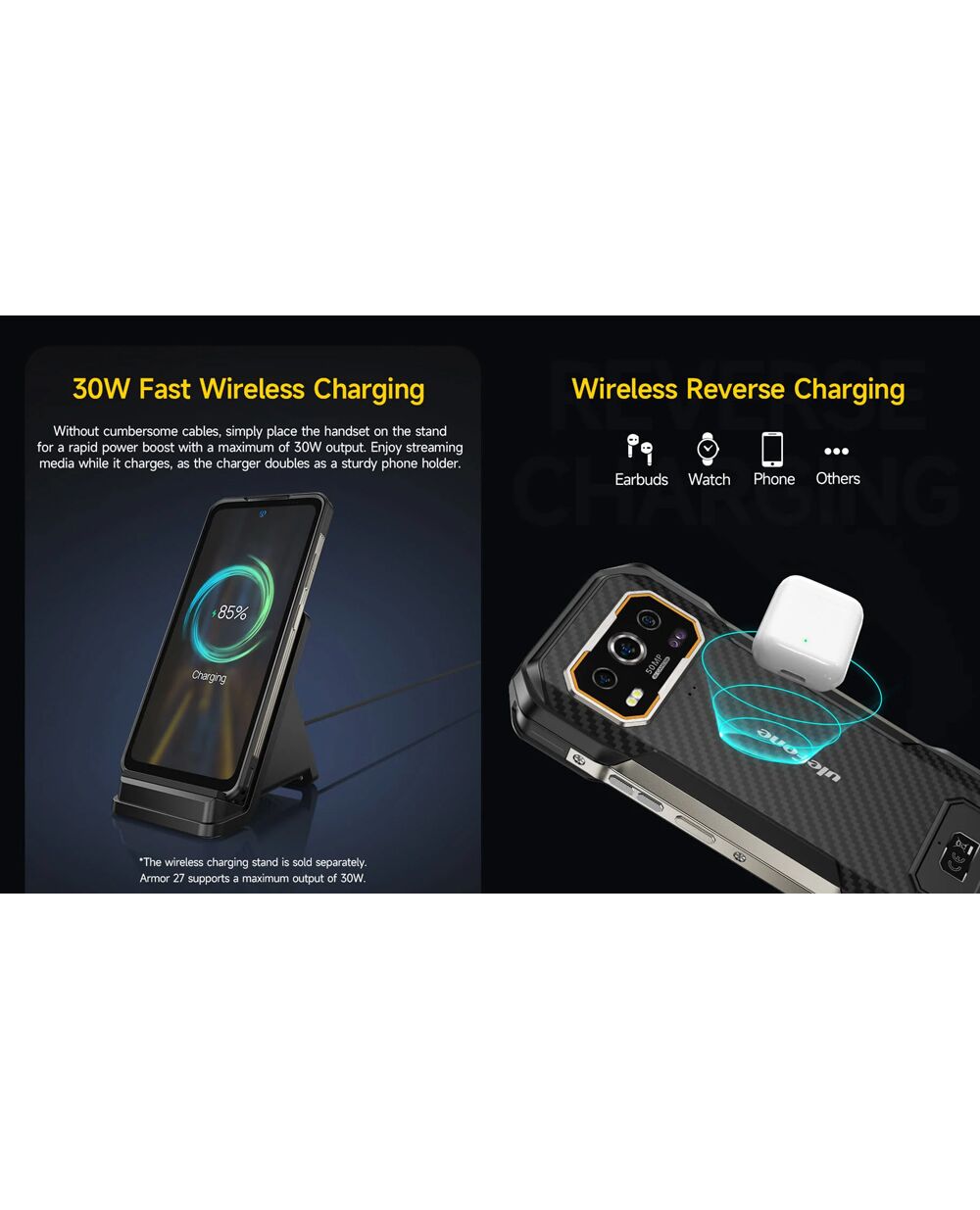 Με μπαταρία 10600mAh, το Armor 27 προσφέρει μεγάλη αυτονομία, που θα σας απαλλάξει από τις συχνές αναζητήσεις τροφοδοσίας. Η φόρτιση του γίνεται με απόδοση 33W ενώ υποστηρίζει και ασύρματη φόρτιση με απόδοση 30W.