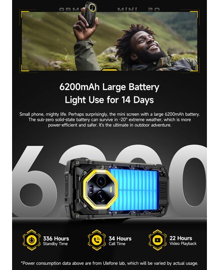 ULEFONE smartphone Armor Mini 20, 4.7", 8/256GB, 4G, 6200mAh, IP68/IP69K, μαύρο