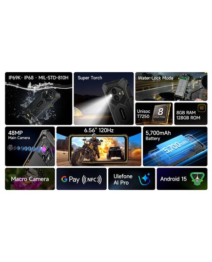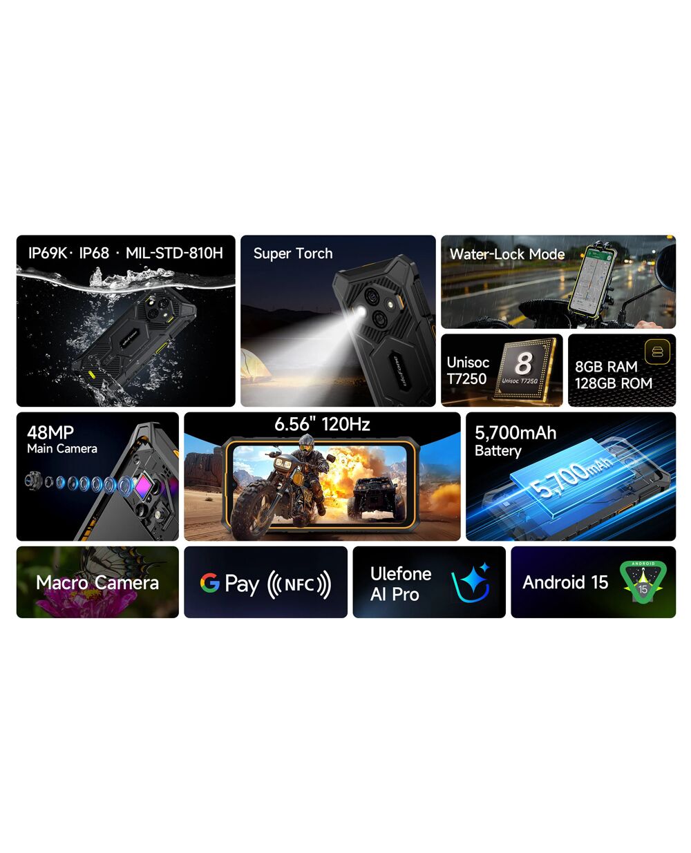 ULEFONE smartphone RugKing 3 Pro, 6.56", 8/128GB, 5700mAh, IP68/IP69K, μαύρο