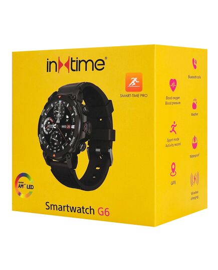INTIME smartwatch G6 με 2x λουράκια, heart rate, 1.43" AMOLED, GPS, 5ATM, titanium black