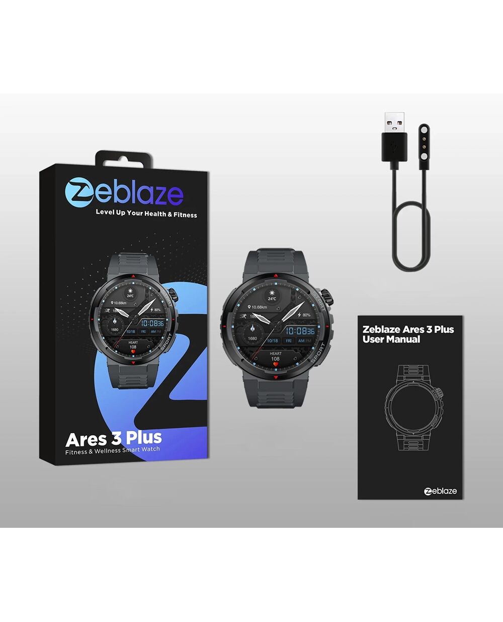 ZEBLAZE smartwatch Ares 3 Plus, heart rate, 1.43" AMOLED, IP68, μαύρο