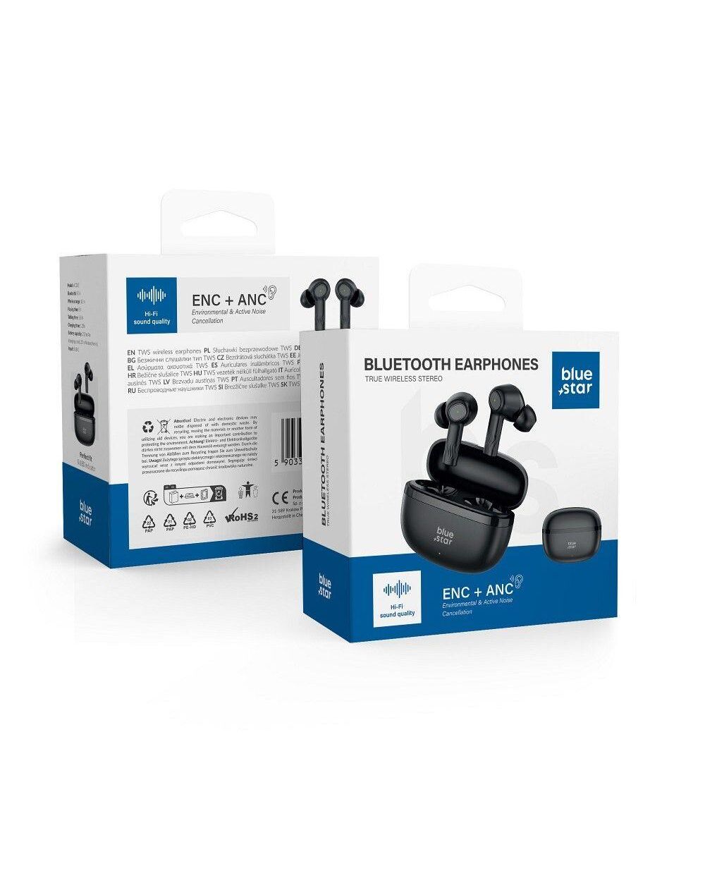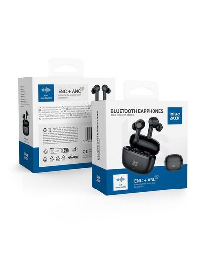 Τα ασύρματα ακουστικά BLUE STAR TWS AC20E με θήκη φόρτισης αποτελούν μια σύγχρονη λύση για τους λάτρεις της μουσικής που εκτιμούν την άνεση και την ποιότητα ήχου. Χρησιμοποιούν την τεχνολογία Bluetooth 5.4, εξασφαλίζοντας σταθερή σύνδεση και ομαλή μετάδοση ήχου με συμβατές συσκευές σε απόσταση έως 12 μέτρων. Με λειτουργία ενεργής ακύρωσης θορύβου (ANC) και μείωσης θορύβου περιβάλλοντος (ENC).Τα ακουστικά διαθέτουν ενσωματωμένες μπαταρίες 25 mAh που παρέχουν έως 5,5 ώρες συνεχούς ακρόασης μουσικής, ενώ η θήκη με επιπλέον μπαταρία 230 mAh επιτρέπει εύκολη φόρτιση εν κινήσει. Ο χρόνος φόρτισης είναι περίπου 1,2 ώρες, κάτι που είναι ιδιαίτερα αποδοτικό και σας επιτρέπει να επιστρέψετε γρήγορα στους αγαπημένους σας ήχους. Η θύρα φόρτισης USB-C είναι πλέον στάνταρ, επιτρέποντας φόρτιση με τα περισσότερα σύγχρονα καλώδια και φορτιστές.Τα ακουστικά διαθέτουν ενεργή ακύρωση θορύβου (ANC) και μείωση θορύβου περιβάλλοντος (ENC), βελτιώνοντας την εμπειρία ακρόασης μουσικής ή κλήσεων σε θορυβώδες περιβάλλον, μειώνοντας τους χαμηλής συχνότητας ήχους, όπως ο θόρυβος κινητήρα, οι ανεμιστήρες, ο θόρυβος αεροπλάνου ή πλήθους.Η άνεση στη χρήση εξασφαλίζεται από εργονομικά σχεδιασμένα ακροφύσια που προσαρμόζονται στο σχήμα του αυτιού, ελαχιστοποιώντας τον κίνδυνο να πέσουν κατά την κίνηση. Επιπλέον, τα ακουστικά διαθέτουν πιστοποίηση IPX4, που σημαίνει ανθεκτικότητα στο νερό και στον ιδρώτα – σημαντικό κατά την προπόνηση σε εξωτερικούς χώρους.Προδιαγραφές:Μάρκα: Blue StarΜοντέλο: AC20EΈκδοση Bluetooth: 5.4Εμβέλεια Bluetooth: έως 12 μΧωρητικότητα μπαταρίας: 25 mAh (ακουστικά), 230 mAh (θήκη)Χρόνος ομιλίας: 5,5 ώρεςΧρόνος αναπαραγωγής μουσικής: 5 ώρεςΧρόνος φόρτισης: 1,2 ώρεςΕνεργή ακύρωση θορύβου (ANC): ναιΜείωση θορύβου περιβάλλοντος (ENC): ναιΕπίπεδο αντοχής στο νερό: IPX4Θύρα φόρτισης: USB-CΠεριεχόμενο συσκευασίας:Ακουστικά BLUE STAR TWS AC20E Θήκη φόρτισης Καλώδιο φόρτισης USB-C Εγχειρίδιο χρήσης