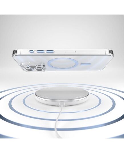 Η θήκη Etteri Color Mag είναι κατασκευασμένη από δύο υλικά: ευέλικτους, μορφοκατάλληλους άκρες TPU και μια αυστηρή πίσω πλευρά από PC. Αυτή η συνδυαστική κατασκευή διασφαλίζει τέλεια εφαρμογή στη συσκευή, παρέχοντας ασφαλή λαβή. Η διαφανής πίσω πλευρά δεν καλύπτει το σχέδιο του τηλεφώνου, τονίζοντας την αρχική του αισθητική. Μεταλλικά κουμπιά και μια προσθήκη σε χρώμα που ταιριάζει προσθέτουν μοναδικό χαρακτήρα.Η λεπτή κατασκευή, με πάχος μόλις 2,5 mm, δεν αυξάνει σημαντικά το μέγεθος του τηλεφώνου, ενώ οι υψωμένες άκρες προστατεύουν αποτελεσματικά την κάμερα. Χάρη στον ενσωματωμένο μαγνήτη με δύναμη 2800 Gs, η θήκη είναι απόλυτα συμβατή με την ασύρματη φόρτιση και την τεχνολογία MagSafe, χωρίς να περιορίζει τη λειτουργικότητα των στηριγμάτων αυτοκινήτου.Ακριβείας κομμένες θύρες διασφαλίζουν πλήρη λειτουργικότητα και προστασία. Κουμπιά με χρώμιο παρέχουν ομαλή λειτουργία.Η θήκη Etteri Color Mag διαθέτει επίσης γωνίες απορρόφησης κραδασμών για ενισχυμένη προστασία. Όλο το προϊόν έρχεται σε minimal, φιλική προς το περιβάλλον συσκευασία από χαρτί, τονίζοντας τον σύγχρονο και βιώσιμο σχεδιασμό του.