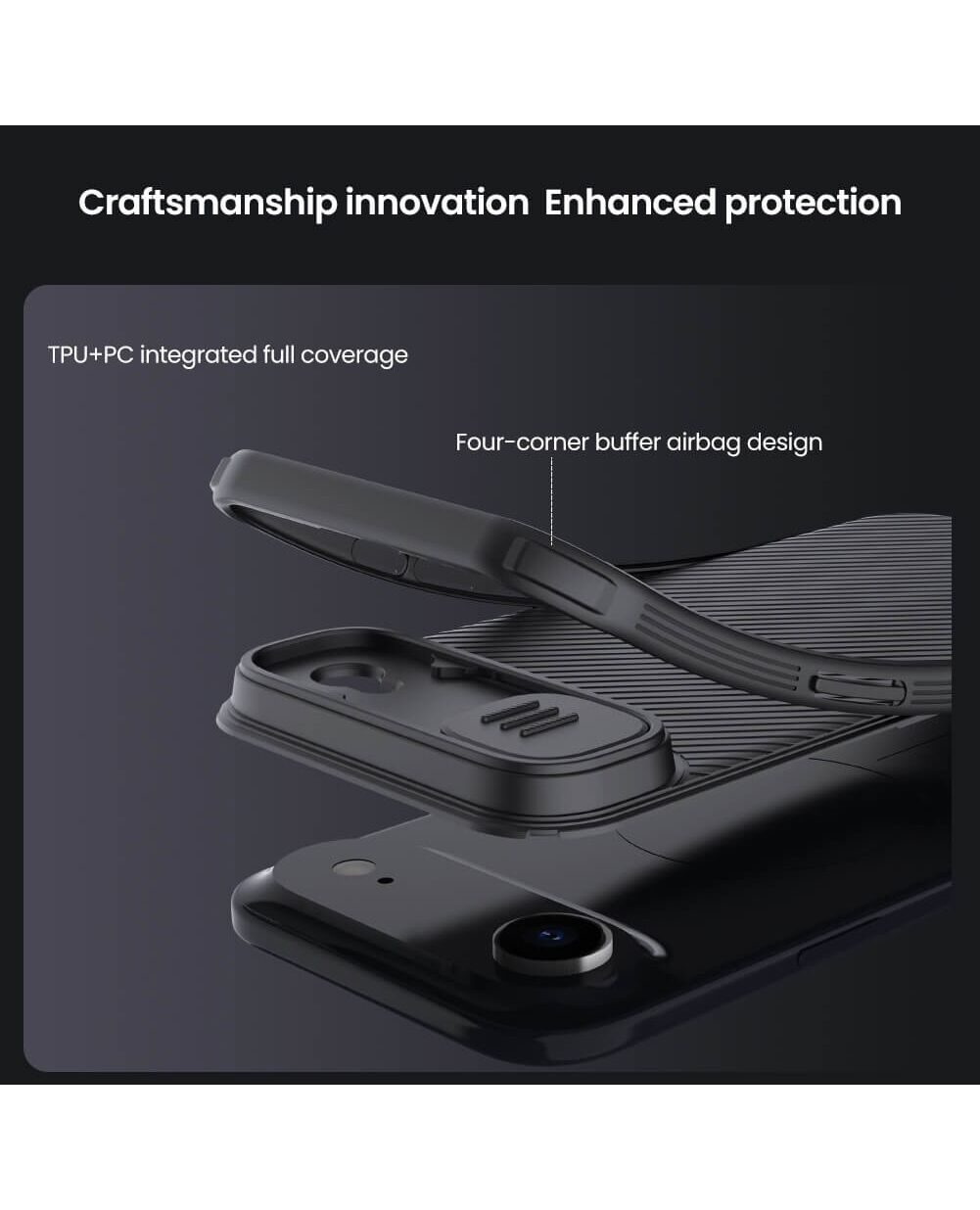 Η θήκη της σειράς CamShield Pro της Nillkin χαρακτηρίζεται από την ενισχυμένη προστασία που προσφέρει, το σκληρό υλικό κατασκευής της με την ανάγλυφη επιφάνεια, αλλά και την έξτρα προστασία των καμερών και της ιδιωτικότητας σας, χάρη στο συρόμενο καπάκι της.