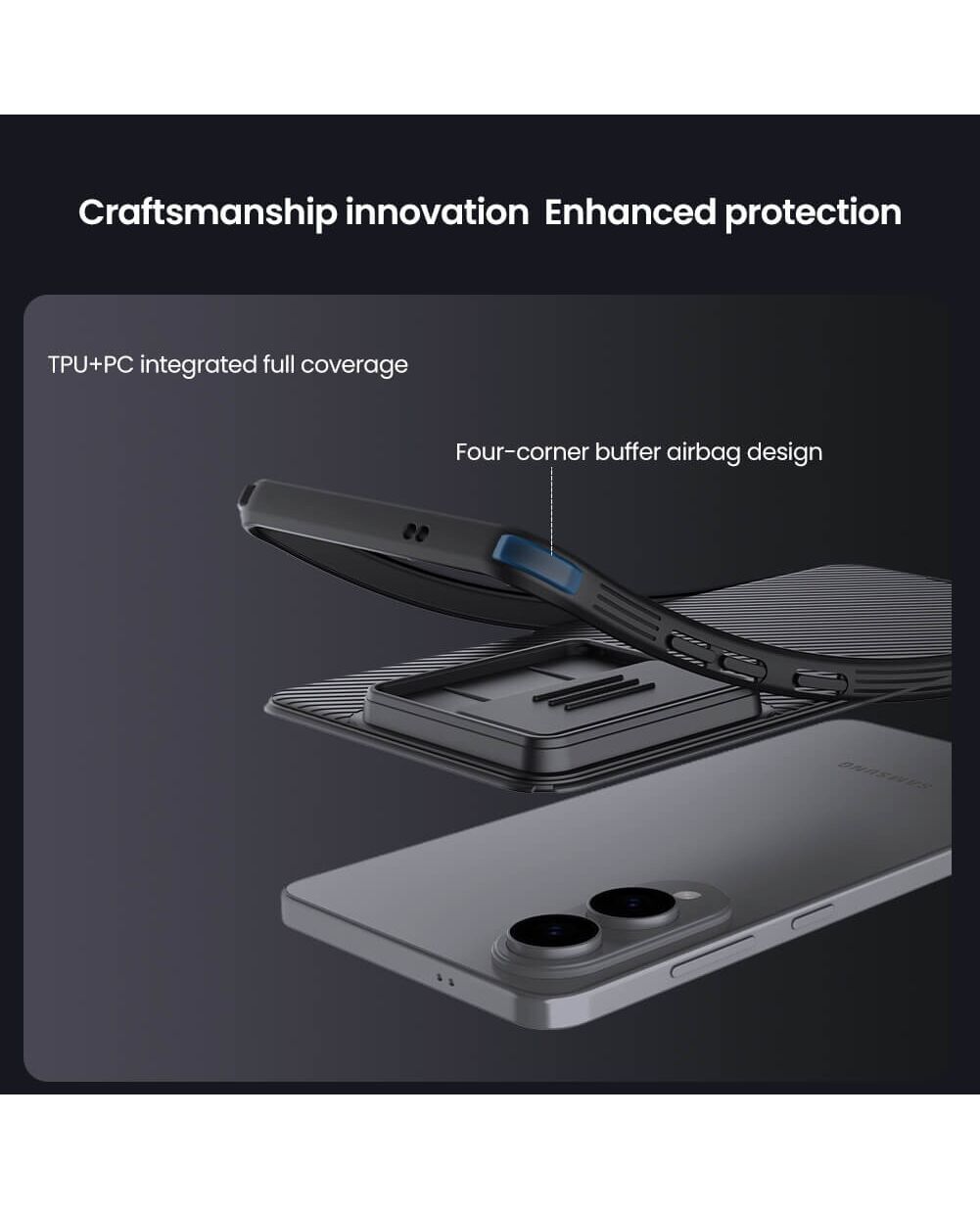 Η θήκη της σειράς CamShield Pro της Nillkin χαρακτηρίζεται από την ενισχυμένη προστασία που προσφέρει, το σκληρό υλικό κατασκευής της με την ανάγλυφη επιφάνεια, αλλά και την έξτρα προστασία των καμερών και της ιδιωτικότητας σας, χάρη στο συρόμενο καπάκι της.