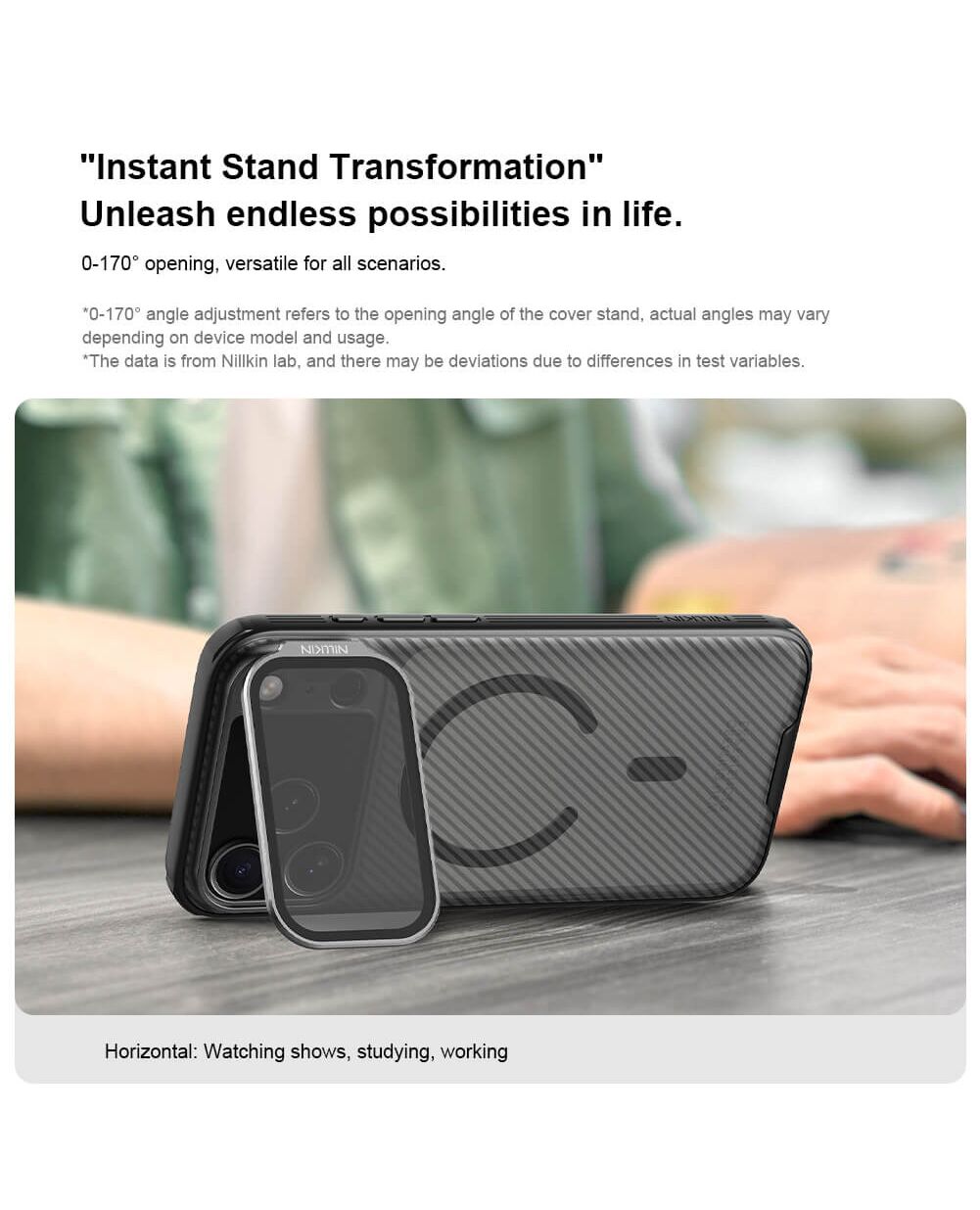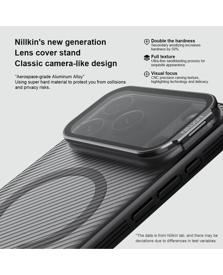Η θήκη της σειράς CamShield Prop Magnetic της Nillkin χαρακτηρίζεται από την ενισχυμένη προστασία που προσφέρει, το σκληρό υλικό κατασκευής της με την ανάγλυφη επιφάνεια, αλλά και την έξτρα προστασία των καμερών και της ιδιωτικότητας σας, χάρη στο ανοιγόμενο μεταλλικό καπάκι καμερών, το οποίο μπορεί να χρησιμοποιηθεί και ως stand.