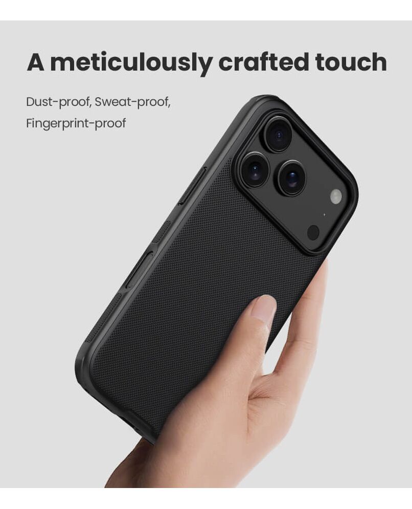 Η θήκη της σειράς Super Frosted Shield Pro της Nillkin χαρακτηρίζεται από το απλό design και το σκληρό υλικό με την ανάγλυφη, αντιολισθητική επιφάνεια, που προστατεύει απόλυτα το smartphone σας. Δεν χαράσσεται, δεν κάνει δαχτυλιές και καθαρίζεται εύκολα.