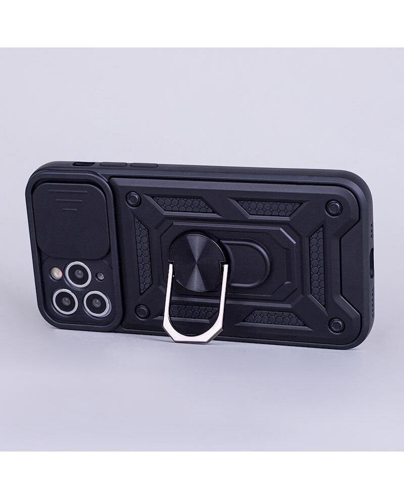 Defender Slide σε πολυεπίπεδη προστατευτική θήκη από ανθεκτικά υλικά – PC, TPU, που ενισχύουν την κατασκευή και προστατεύουν αποτελεσματικά το smartphone από πτώσεις και κτυπήματα. Χάρη σε υψωμένες άκρες, τόσο η οθόνη όσο και η κάμερα αποκτούν επιπλέον προστασία από γρατσουνιές και σπασίματα.Ενσωματωμένος αλυσίδας δακτύλου αλουμινίου διευκολύνει τη συγκράτηση του τηλεφώνου και λειτουργεί ως βάση. Κινούμενο κάλυμμα κάμερας αυξάνει την ιδιωτικότητα και προστατεύει τους φακούς, ενώ οι ακριβείς κοπές και τα κουμπιά εξασφαλίζουν άνετη χρήση της συσκευής.