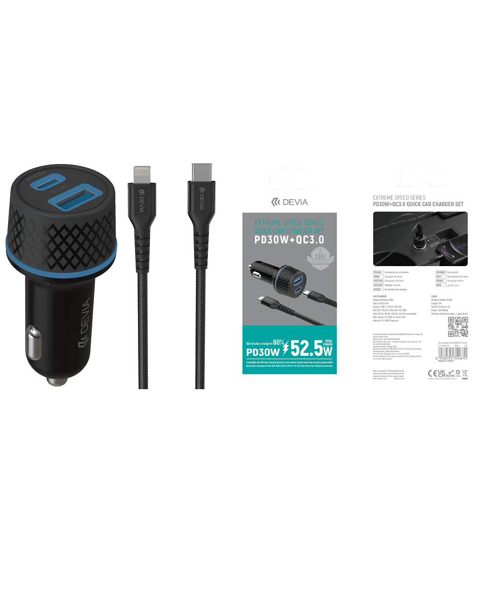 DEVIA Extreme speed series PD30W+QC full compatible PD car charger suit + Cable Lightning