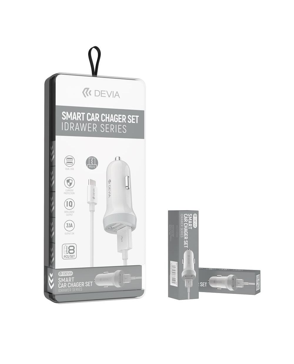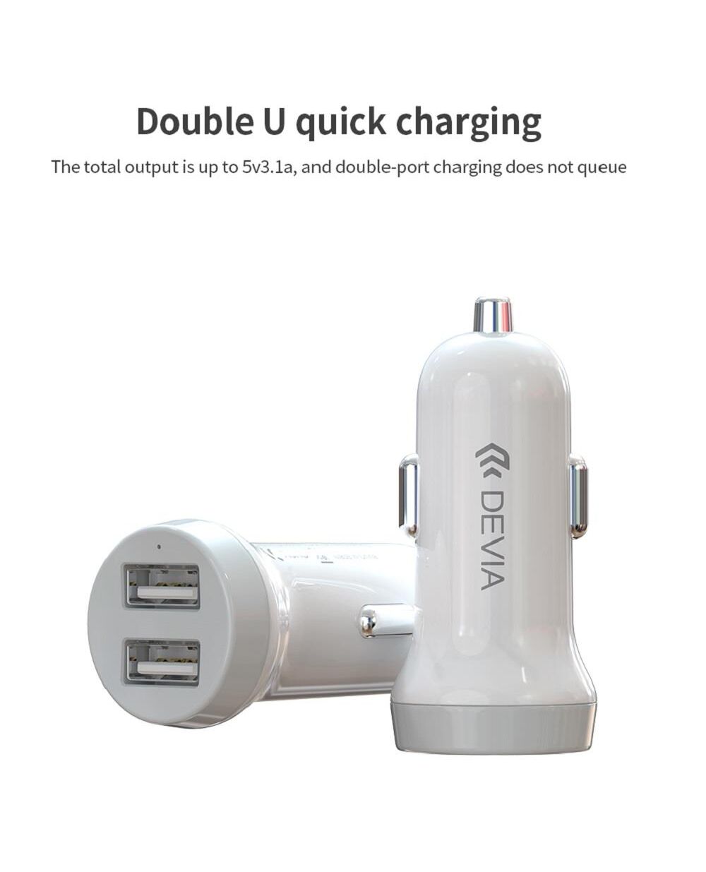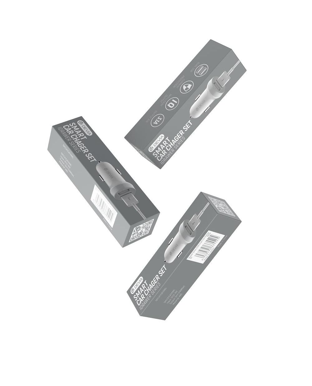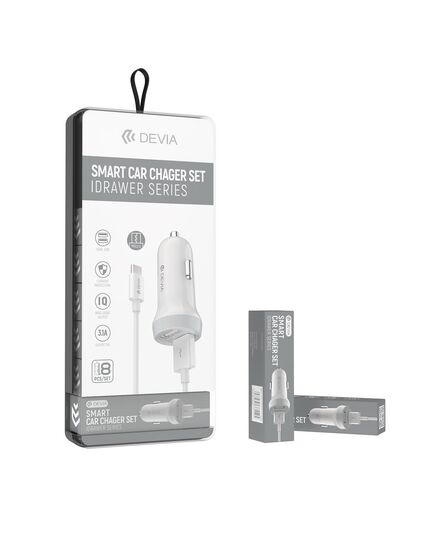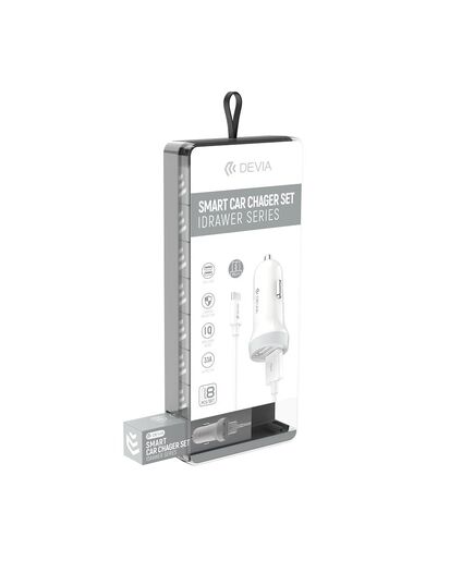 Devia - Idrawer series smart Car Charger Set with Lightning cable White (5V3.1A,2USB)