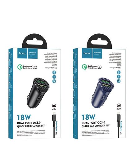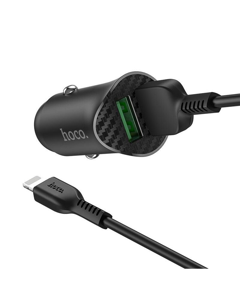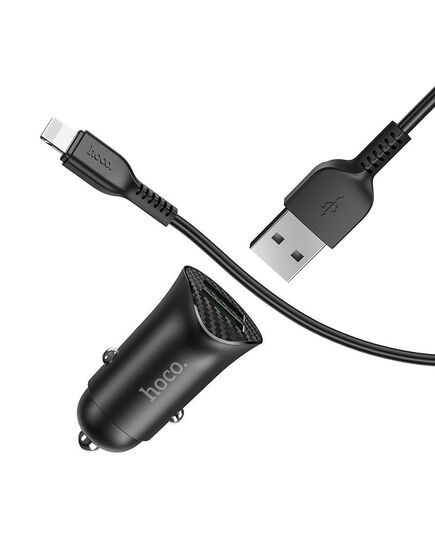 HOCO - Z39 Car Charger Dual Port QC3.0 18W Set Lightning Cable Black