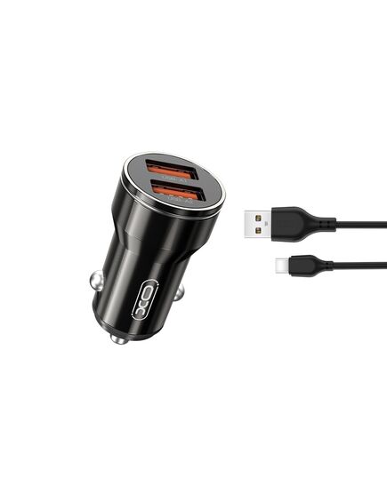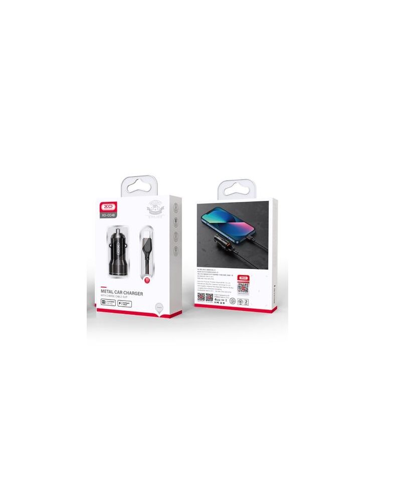 XO - CC48 CAR CHARGER 12V 12W, 2.4A, 2xUSB-A,Steel + Type-C, Black