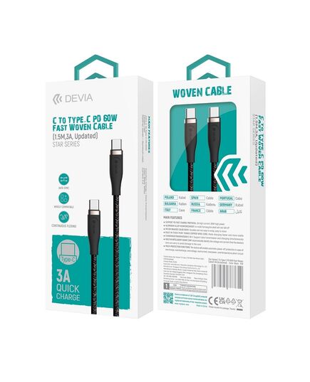 DEVIA cable Star PD USB-C – USB-C 1,5 m 60W 3A white