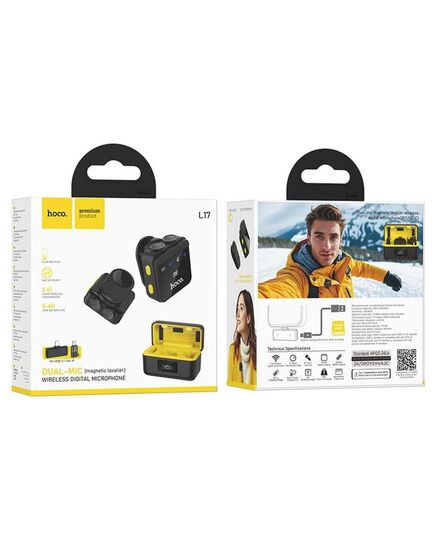 Το Hoco L17 είναι ένα σετ δύο ασύρματων μικροφώνων πέτου που προσφέρουν ήχο υψηλής ποιότητας για συνεντεύξεις, vlogs και ζωντανές μεταδόσεις. Με συμβατότητα για συσκευές με θύρες Lightning και USB-C, είναι ιδανικά για διάφορα σενάρια ηχογράφησης σε πολλαπλές συσκευές.Βασικά χαρακτηριστικά:Δύο μικρόφωνα στο σετ – ιδανικά για ηχογράφηση συνομιλιών ή συνεντεύξεων με δύο άτομα ταυτόχρονα.Ασύρματη σύνδεση – ελευθερία κινήσεων χωρίς περιορισμούς καλωδίων.Συμβατότητα με Lightning και USB-C – λειτουργεί με smartphones, tablets και άλλες συσκευές.Μείωση θορύβου – καθαρές ηχογραφήσεις ακόμη και σε θορυβώδη περιβάλλοντα.Ελαφρύς και συμπαγής σχεδιασμός – εύκολη τοποθέτηση στα ρούχα με το ενσωματωμένο κλιπ.Τεχνικές προδιαγραφές:Τύπος μικροφώνου: ασύρματο, πέτουΣυμβατότητα: Lightning και USB-CΑριθμός μικροφώνων: 2 τεμάχια στο σετΑσύρματη εμβέλεια: έως 10 μέτραΧρώμα: μαύροΤο Hoco L17 είναι η ιδανική επιλογή για δημιουργούς περιεχομένου, vloggers και επαγγελματίες που ηχογραφούν καθημερινά. Με ποιοτικό ήχο και ευκολία χρήσης, οι ηχογραφήσεις σας θα ακούγονται πάντα επαγγελματικές.