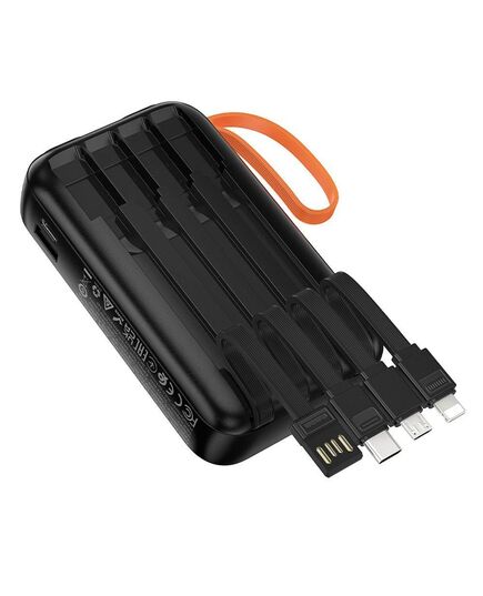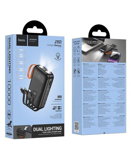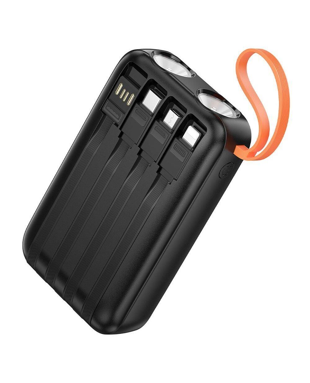 Το Hoco J151 power bank 10.000 mAh είναι μια συμπαγής και ελαφριά πηγή ενέργειας με δύο υποδοχές (USB-A, USB-C), τέσσερα ενσωματωμένα καλώδια (USB-A, USB-C, Lightning, Micro USB) και διπλό φακό LED. Υποστηρίζει φόρτιση έως 10W 5V/2A και διαθέτει ευδιάκριτη LED οθόνη που δείχνει το επίπεδο φόρτισης.Τα ενσωματωμένα καλώδια σας επιτρέπουν να φορτίζετε τις περισσότερες δημοφιλείς συσκευές χωρίς να χρειάζεστε επιπλέον καλώδια. Μπορείτε επίσης να χρησιμοποιείτε ταυτόχρονα τον φακό – δύο ισχυρά LED είναι ιδανικά για ταξίδια και καταστάσεις έκτακτης ανάγκης. Η καθαρή LED οθόνη σας επιτρέπει να ελέγχετε γρήγορα την υπολειπόμενη ενέργεια του power bank.Το περίβλημα είναι κατασκευασμένο από ανθεκτικό στη φωτιά υλικό ABS + PC, γεγονός που το καθιστά ανθεκτικό και ιδανικό για καθημερινή χρήση. Ο πρακτικός σχεδιασμός με χειρολαβή το καθιστά εύκολο στη μεταφορά, ενώ το μικρό του μέγεθος κάνει το J151 μια χρήσιμη προσθήκη σε σακίδιο ή τσάντα.Τεχνικά χαρακτηριστικά:Είσοδος:Θύρα USB-C 10 W 5V/2AΚαλώδιο με υποδοχή USB-A 10 W 5V/2AΈξοδος: Θύρα USB-A 10 W 5V/2AΚαλώδια με υποδοχές: USB-C 10 W 5V/2A, Lightning 10 W 5V/2A, Micro USB 10 W 5V/2AΣυνολική ισχύς εξόδου: 10 W 5V/2AΣυνολική χωρητικότητα: 10.000mAh / 37 WHOΟνομαστική χωρητικότητα: 5.500 mAhΟθόνη: LED – επίπεδο φόρτισης σε %Αξεσουάρ: Διπλός φακός LEDΥλικό: ABS + PC (ανθεκτικό στη φωτιά), μπαταρία λιθίου πολυμερώνΔιαστάσεις: 112 ? 66.2 ? 32 mmΒάρος: 265 g