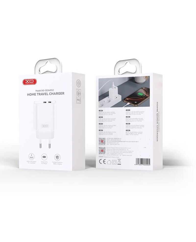 XO - Wall charger CE34 2x USB 2,4A White + USB-C cable