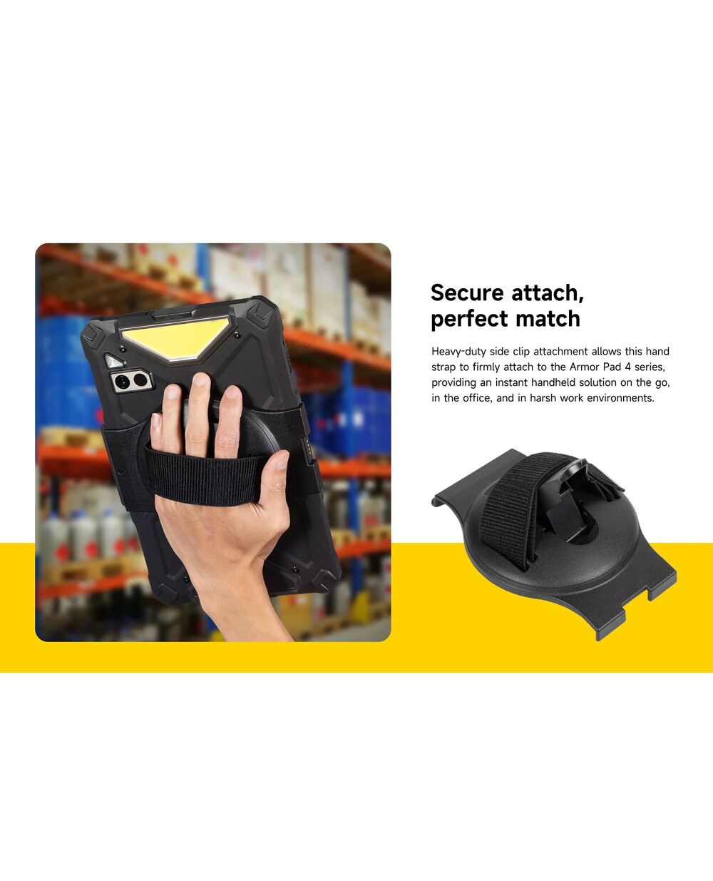 Βάση για τα tablet της σειράς Armor Pad 4 από την Ulefone. Διαθέτει ιμάντα χεριού για άνετο και ασφαλές κράτημα του tablet με το ένα χέρι.