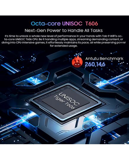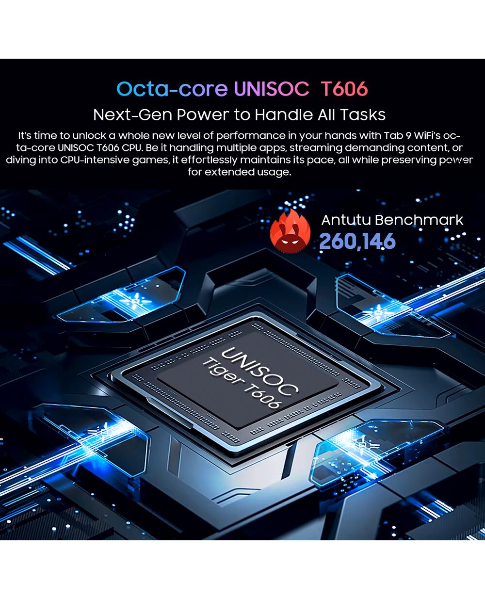 Εξοπλισμένο με επεξεργαστή 8 πυρήνων και λειτουργικό Android 14, το Tab 9 WiFi προσφέρει υψηλή απόδοση για απρόσκοπτη περιήγηση στο διαδίκτυο, παιχνίδια, πολυμέσα και πολλά άλλα.