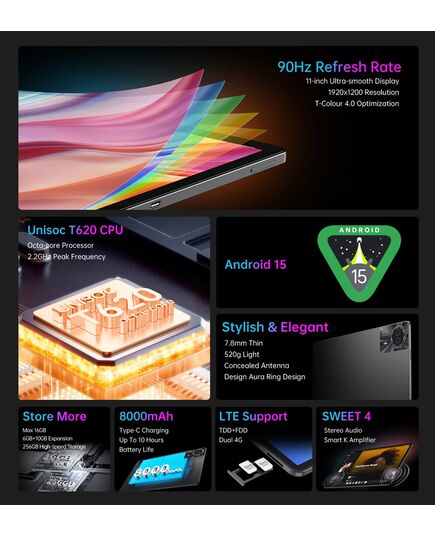 Το tablet T50 Plus της Teclast συνδυάζει εντυπωσιακές επιδόσεις και εκλεπτυσμένο σχεδιασμό. Με μεγάλη οθόνη 11", ευέλικτο σύστημα λειτουργικού Android 15 και ισχυρό οκταπύρηνο επεξεργαστή, το T50 Plus προσφέρει υψηλή απόδοση, για απρόσκοπτη περιήγηση στο διαδίκτυο, παιχνίδια, πολυμέσα και πολλά άλλα.