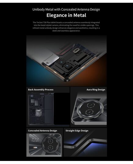 Με ελαφρύ και λεπτό μεταλλικό σώμα, το tablet T50 Plus είναι άνετο στη χρήση και εύκολο να μεταφέρεται παντού.