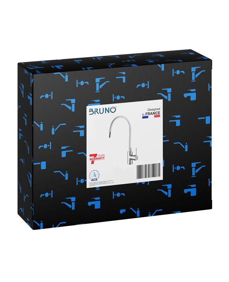 Αναμεικτική μπαταρία κουζίνας για παροχή ζεστού και κρύου νερού από την Bruno. Διαθέτει εύκαμπτο σωλήνα με ματ υφή ο όποιος μπορεί να μετακινηθεί και να προσαρμοστεί ανάλογα με τις ανάγκες σας.