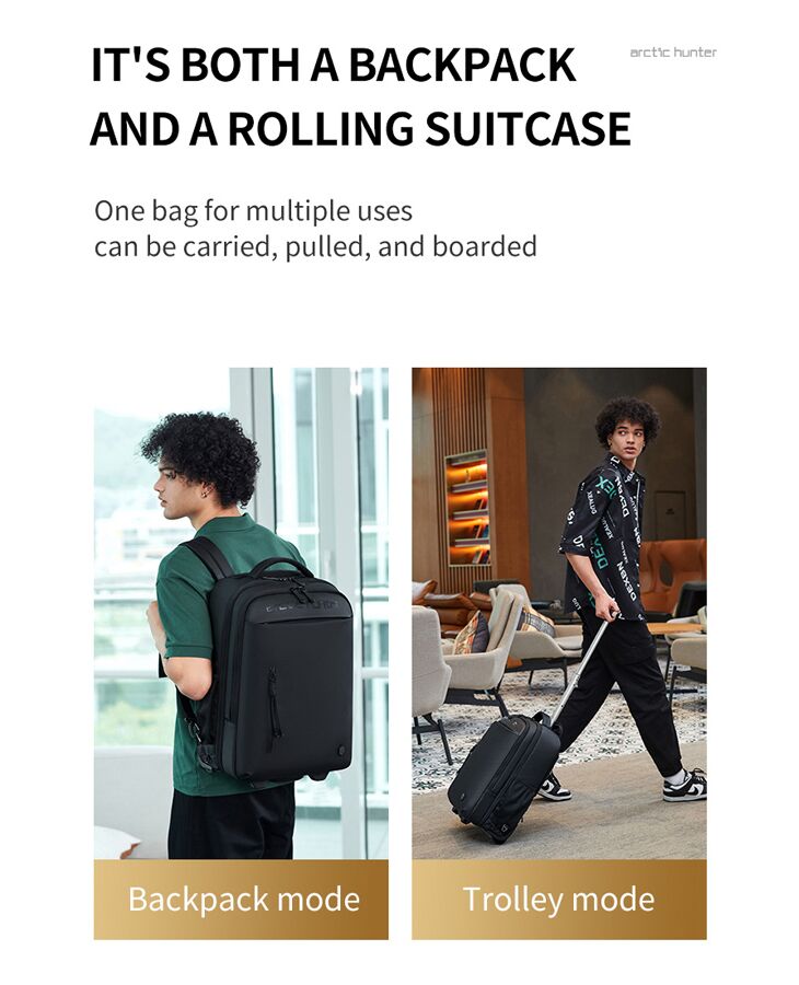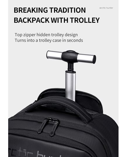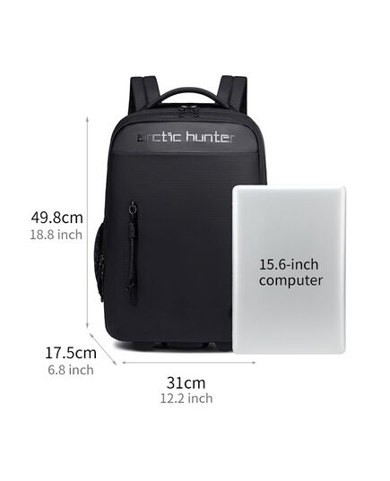 ARCTIC HUNTER τσάντα ταξιδίου LG00657-1 με θήκη laptop 15.6", τροχήλατη, 27L, μαύρη