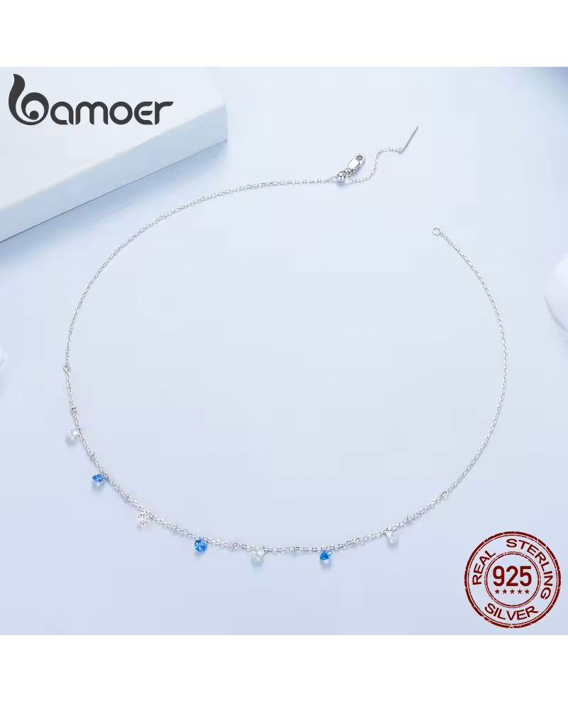 Εντυπωσιακό κολιέ Bamoer, με ιδιαίτερο και μοναδικό design. Διαθέτει ασημί αλυσίδα, διακοσμημένη με κυβική ζιρκόνια, λευκού και μπλε χρώματος.