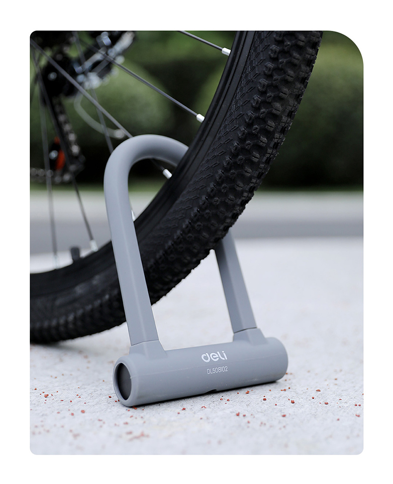 Κλειδαριά πέταλο ποδηλάτου της Deli με ανθεκτική ατσάλινη κατασκευή και εξωτερική επένδυση σιλικόνης, για την προστασία του ποδηλάτου σας από κλοπές.