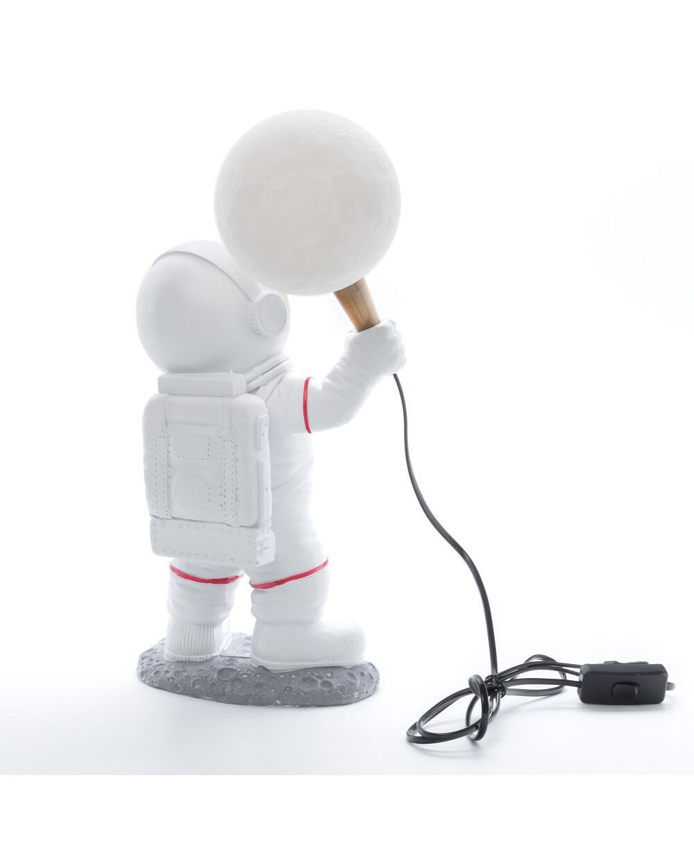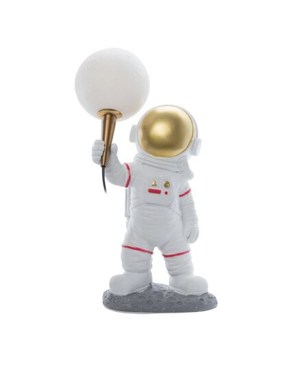 The lamp is made of resin, which guarantees its durability and precise detail reproduction. Equipped with modern lighting solutions, it provides high luminous efficiency (100 lm/w) and significant luminous flux (1000 lm), which makes it both practical and energy-saving.The design of the lamp depicting an astronaut and the moon, which also serves as a lamp, is an ingenious reference to the conquest of space. The lamp is perfect for placing on a desk, shelf or bedside table, without taking up much space.Specification:Input voltage: 36VLuminous efficiency: 100 lm/wLuminous flux: 1000 lmColor rendering index (Ra): 80Material: resinPower supply: mainsSize: 34 ? 14 ? 10 cmWeight: approx. 1 kgBulb:& LED