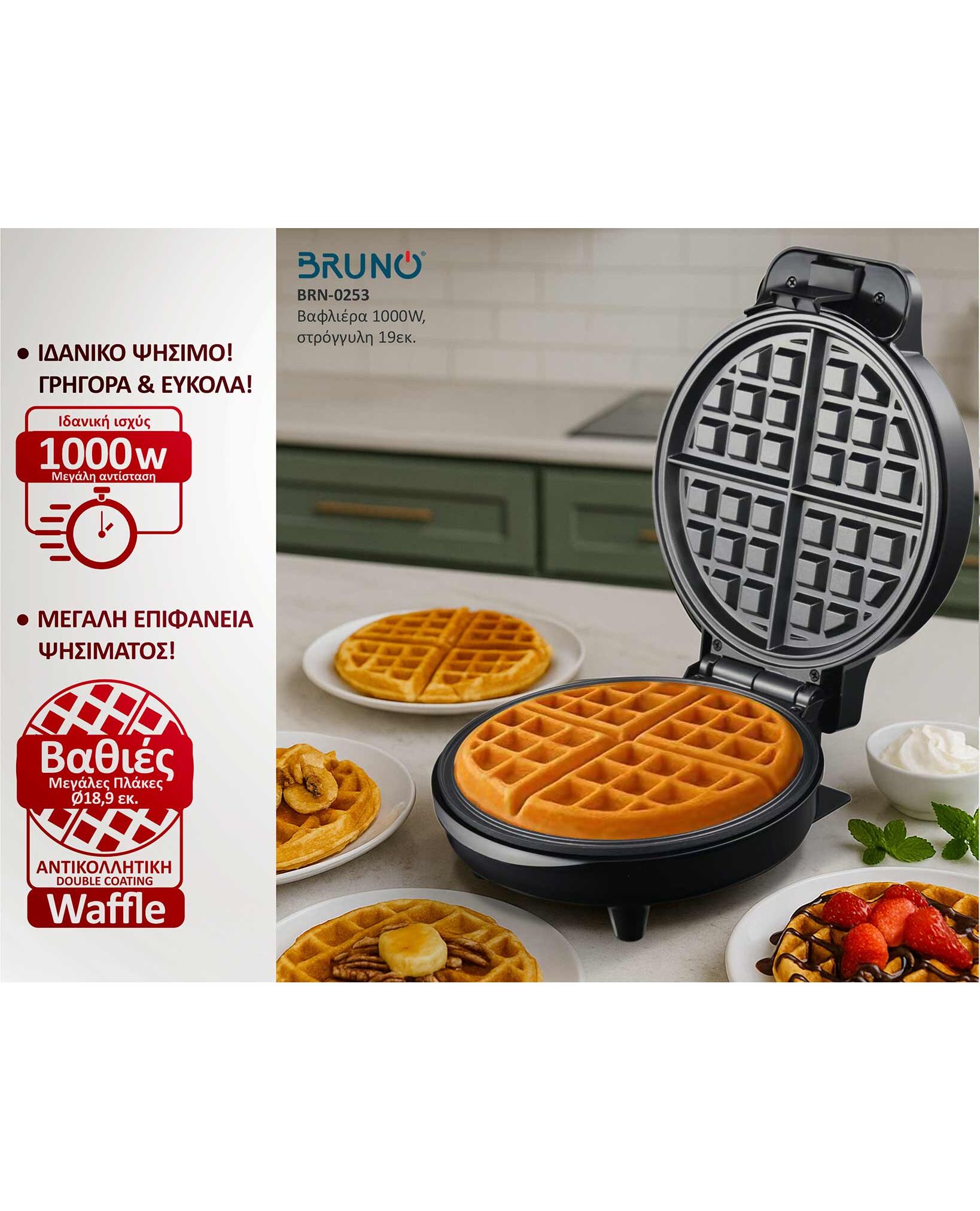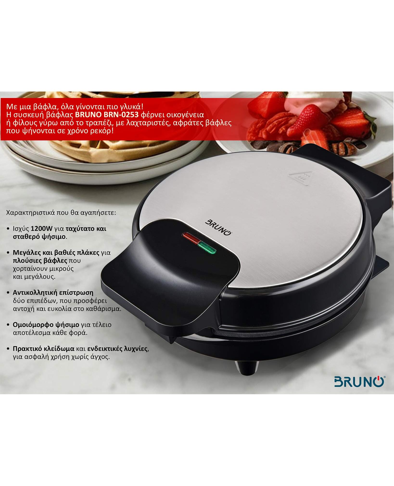 Χαρακτηριστικό γνώρισμά της είναι οι βαθιές πλάκες για πλούσιες βάφλες σε χρόνο ρεκόρ!
