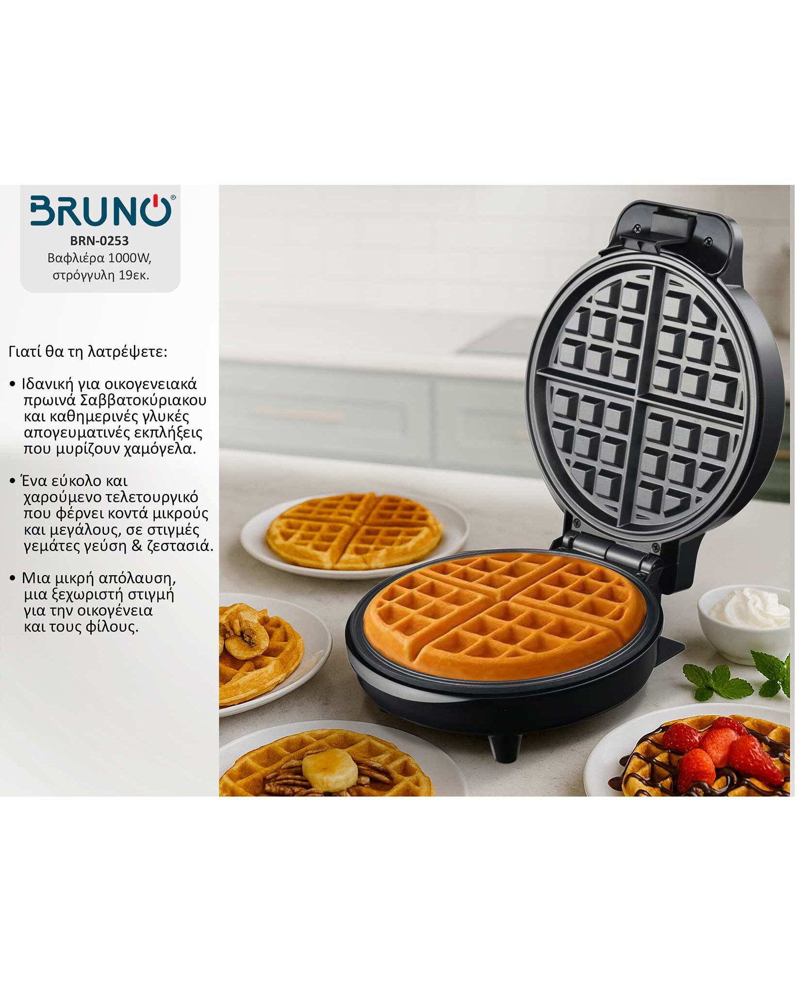 Η συσκευή βάφλας BRUNO BRN-0253 φέρνει οικογένεια ή φίλους γύρω από το τραπέζι, με λαχταριστές, αφράτες βάφλες που ψήνονται σε χρόνο ρεκόρ!