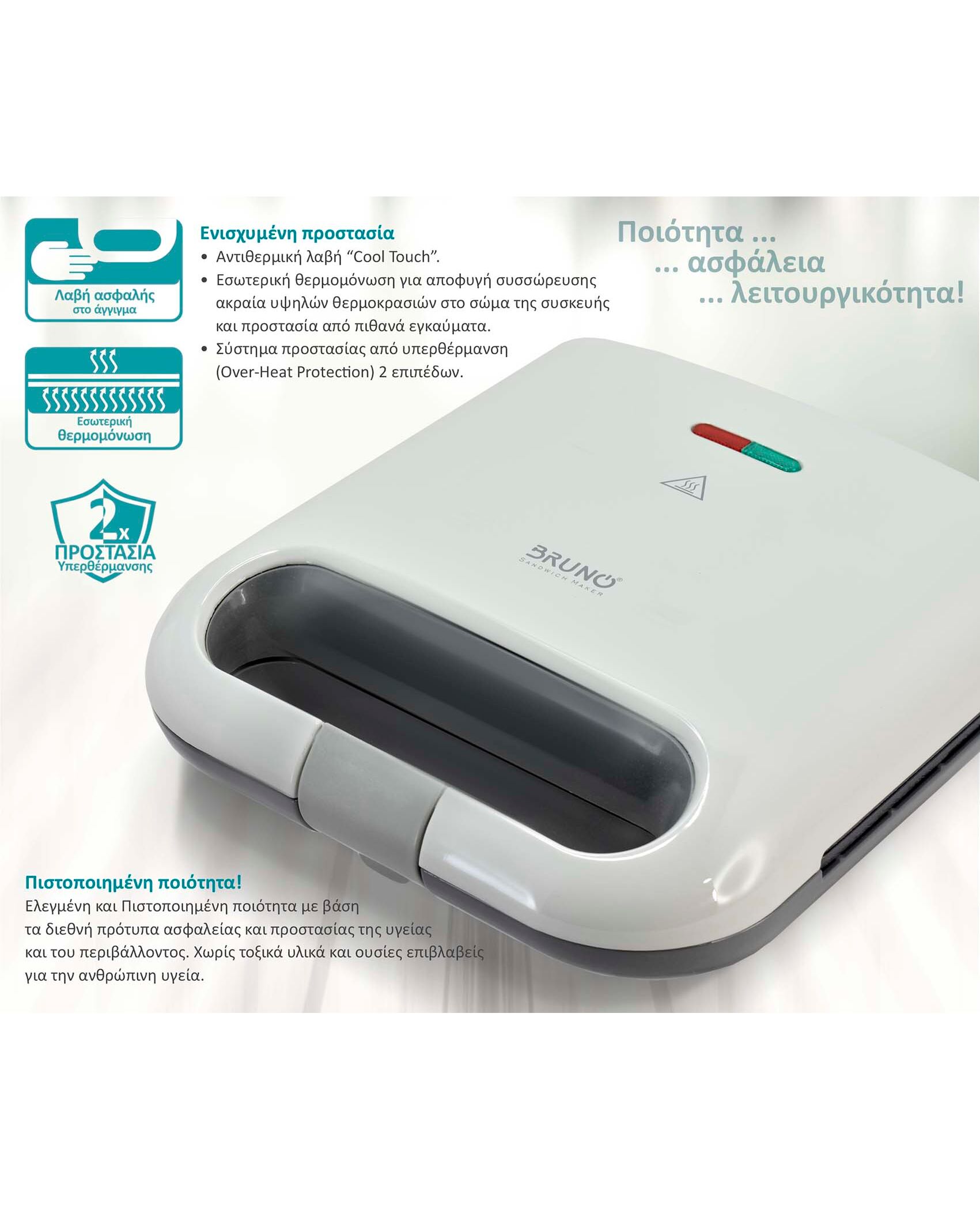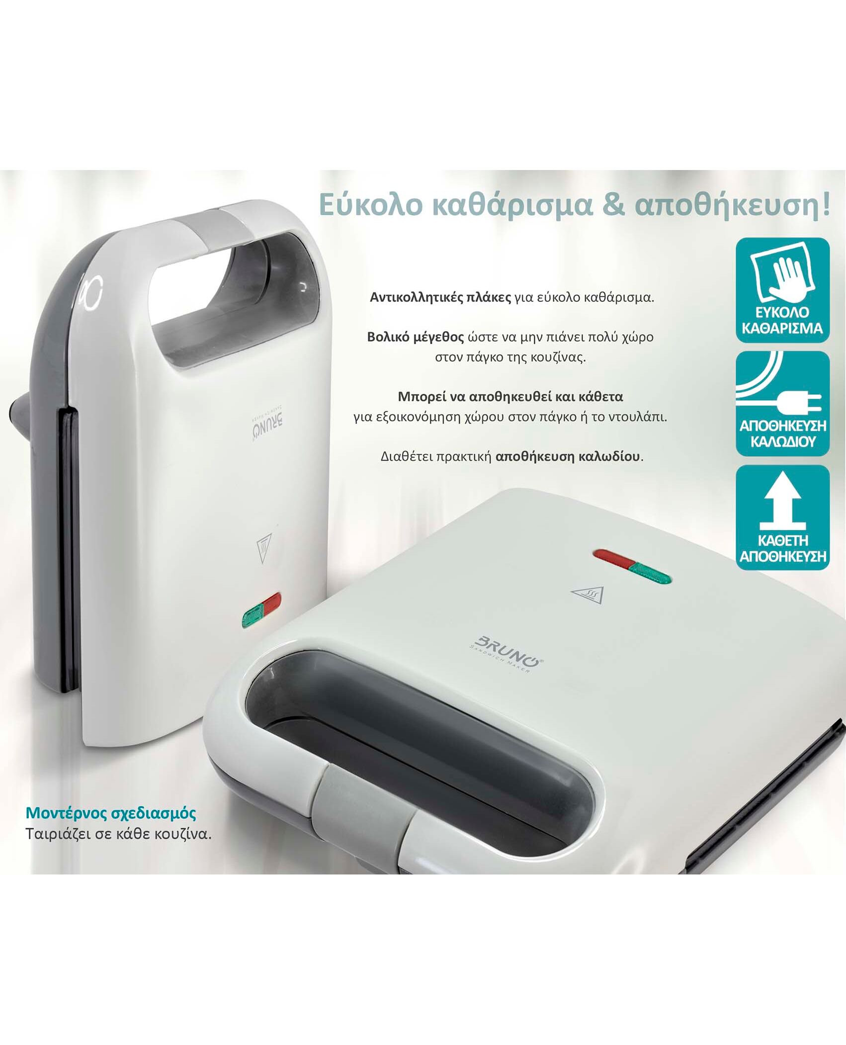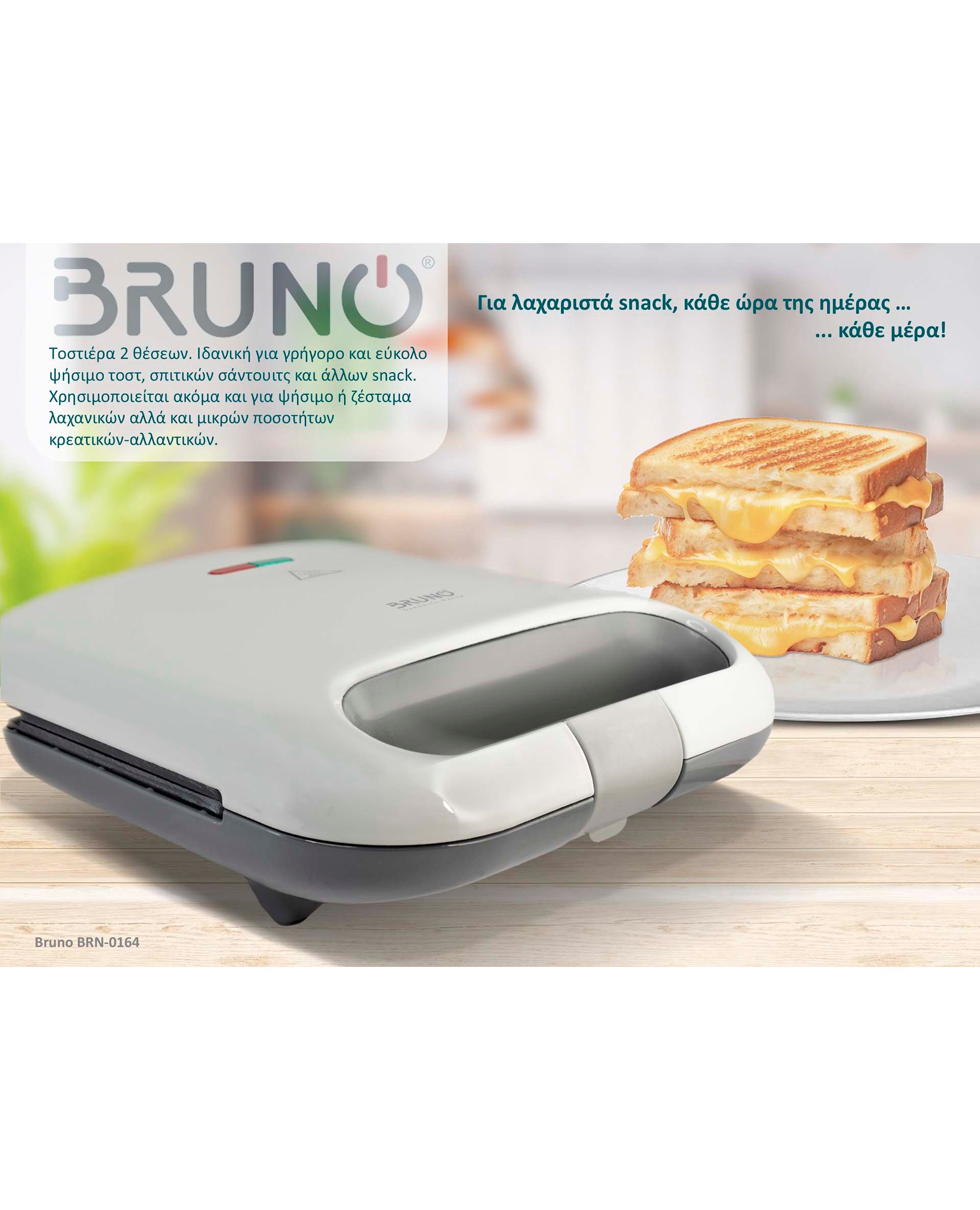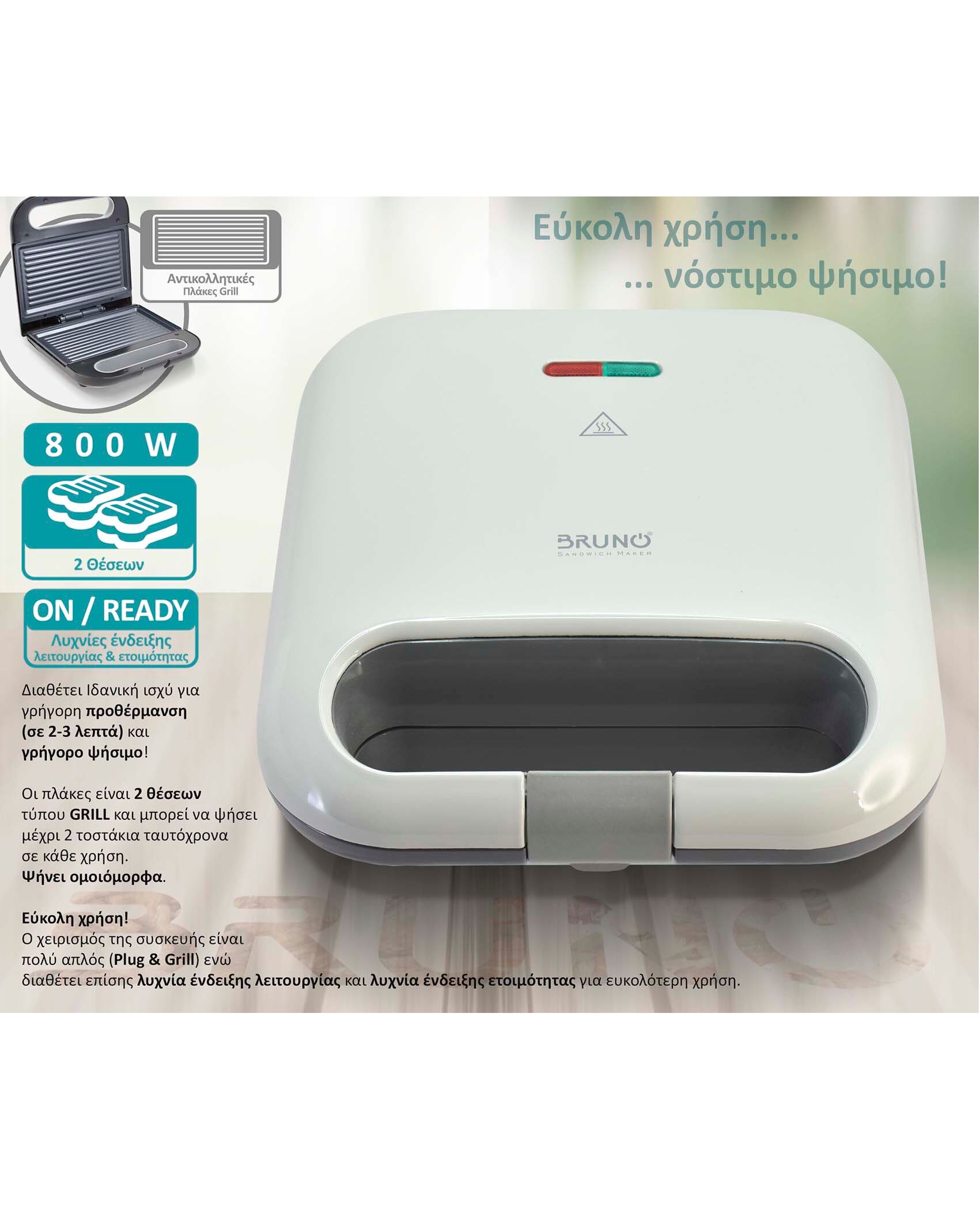 BRUNO τοστιέρα BRN-0164, 2 θέσεων, 800W, αντικολλητικές πλάκες, λευκή