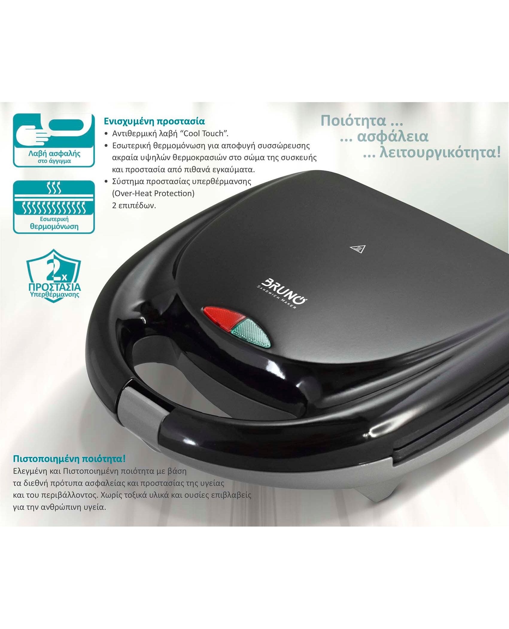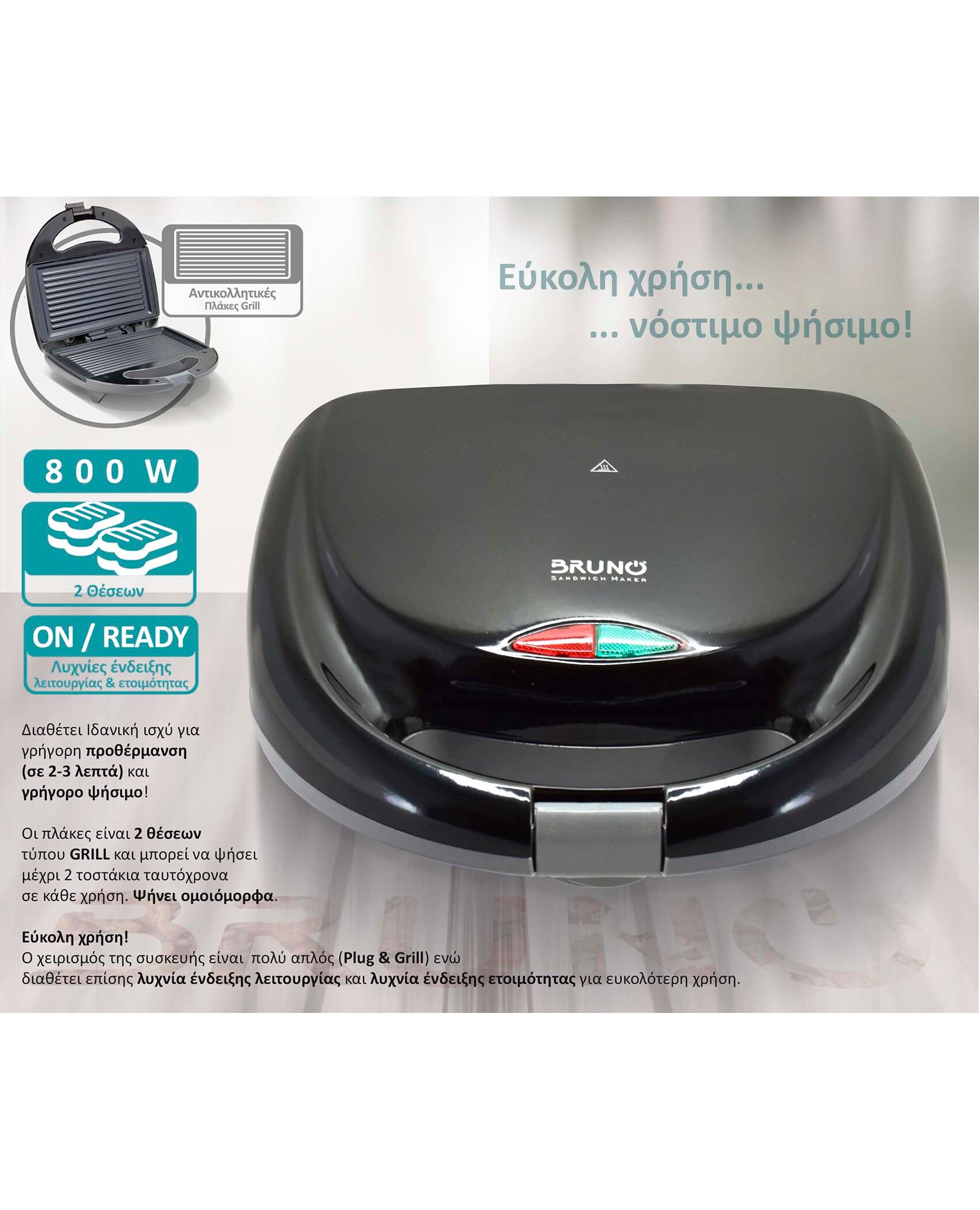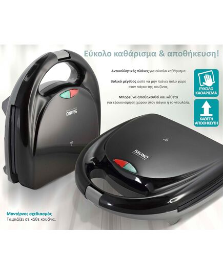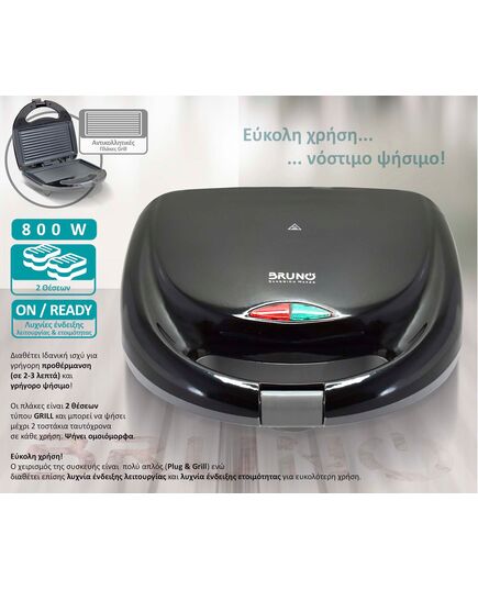 BRUNO τοστιέρα BRN-0167, 2 θέσεων, 800W, αντικολλητικές πλάκες, μαύρη