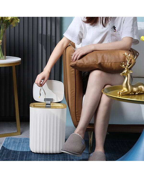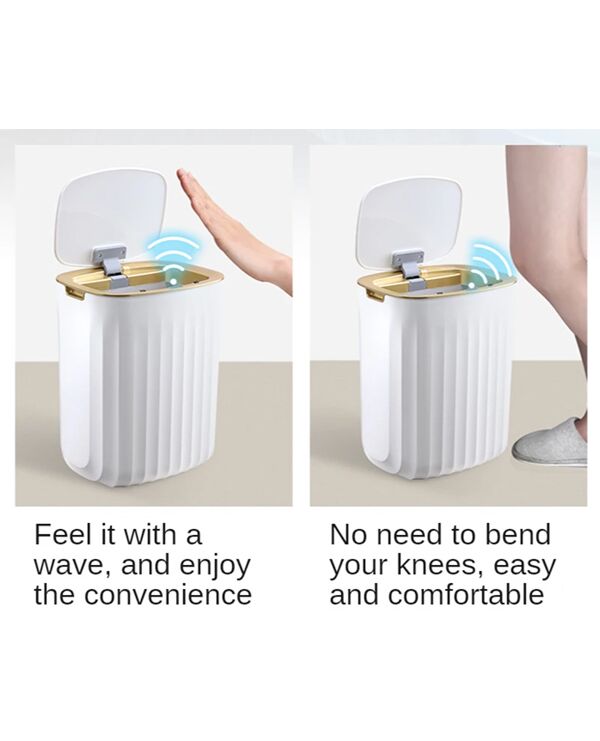 Πλαστικός κάδος απορριμμάτων με χωρητικότητα 12 λίτρα. Το καπάκι του ανοίγει αυτόματα με την κίνηση του χεριού σας χάρη στον ενσωματωμένο αισθητήρα που διαθέτει ενώ στο εσωτερικό του διαθέτει αποσπώμενο δακτύλιο για την εύκολη στερέωση της σακούλας απορριμμάτων.