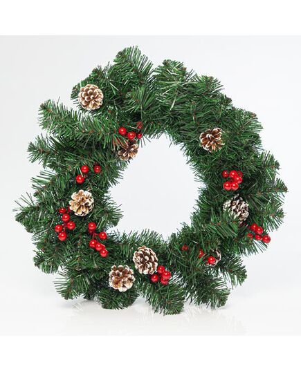ΣΤΕΦΑΝΙ 50cm, ΜΕ ΧΙΟΝΙΣΜΕΝΕΣ ΚΟΥΚΟΥΝΑΡΕΣ ΚΑΙ BARRIES, 80 TIPS (ΠΑΧΟΣ ΤΩΝ TIPS 8cm), ΠΡΑΣΙΝΟ ΧΡΩΜΑ
