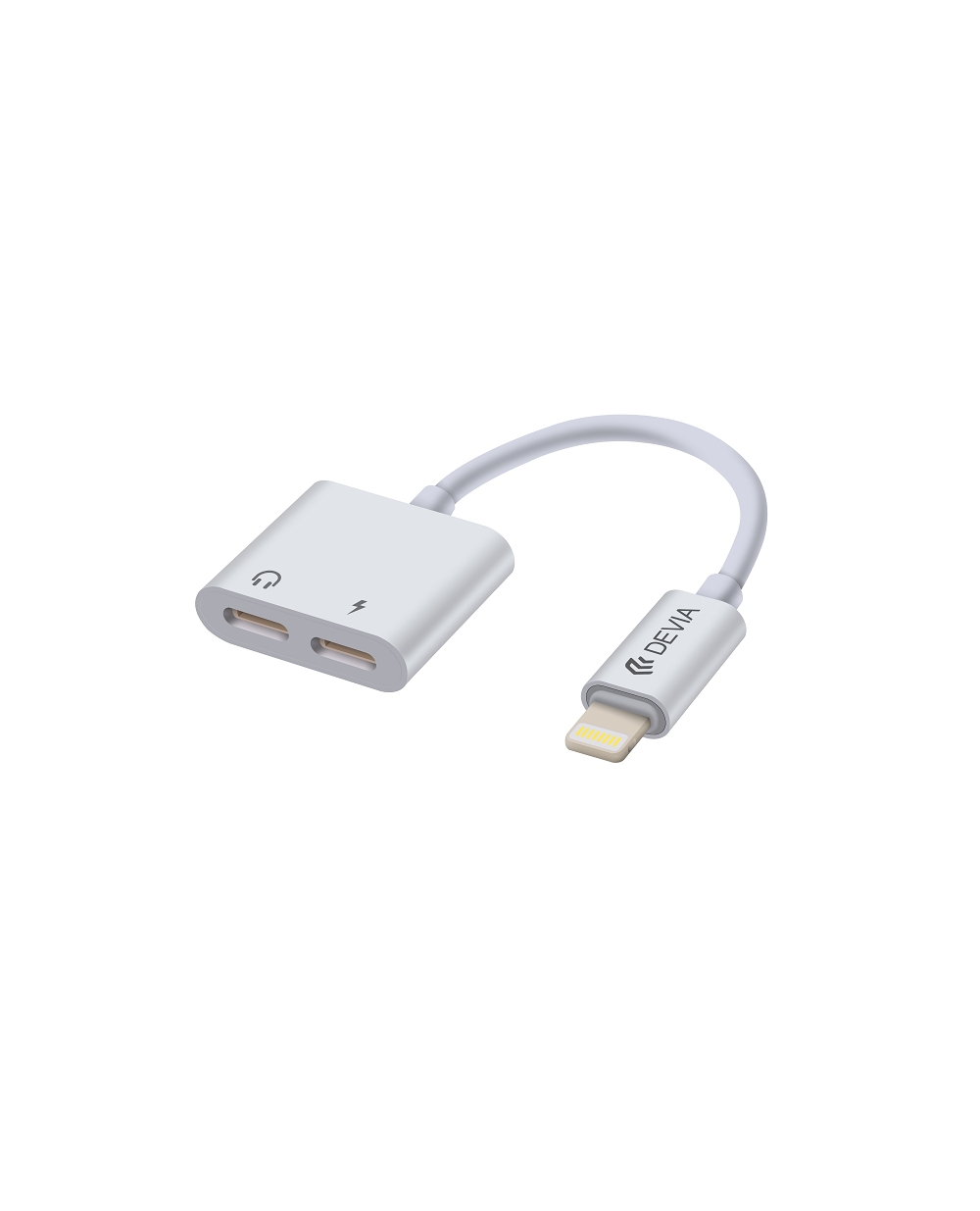 DEVIA Smart 2 in 1 Dual Lightning Adapter Charging Splitter Audio Cable White