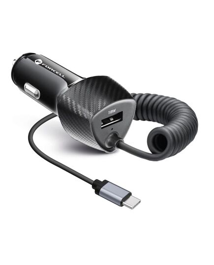 FORCELL CARBON car charger USB QC 3.0 18W + Type C Cable PD20W CC50-1AC black (38W)