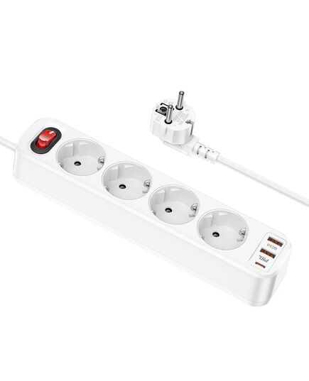 HOCO - NS1 Aura Πολύπριζο 4 Θέσεων με Διακόπτη, 3 USB και Καλώδιο 1.8m Λευκό