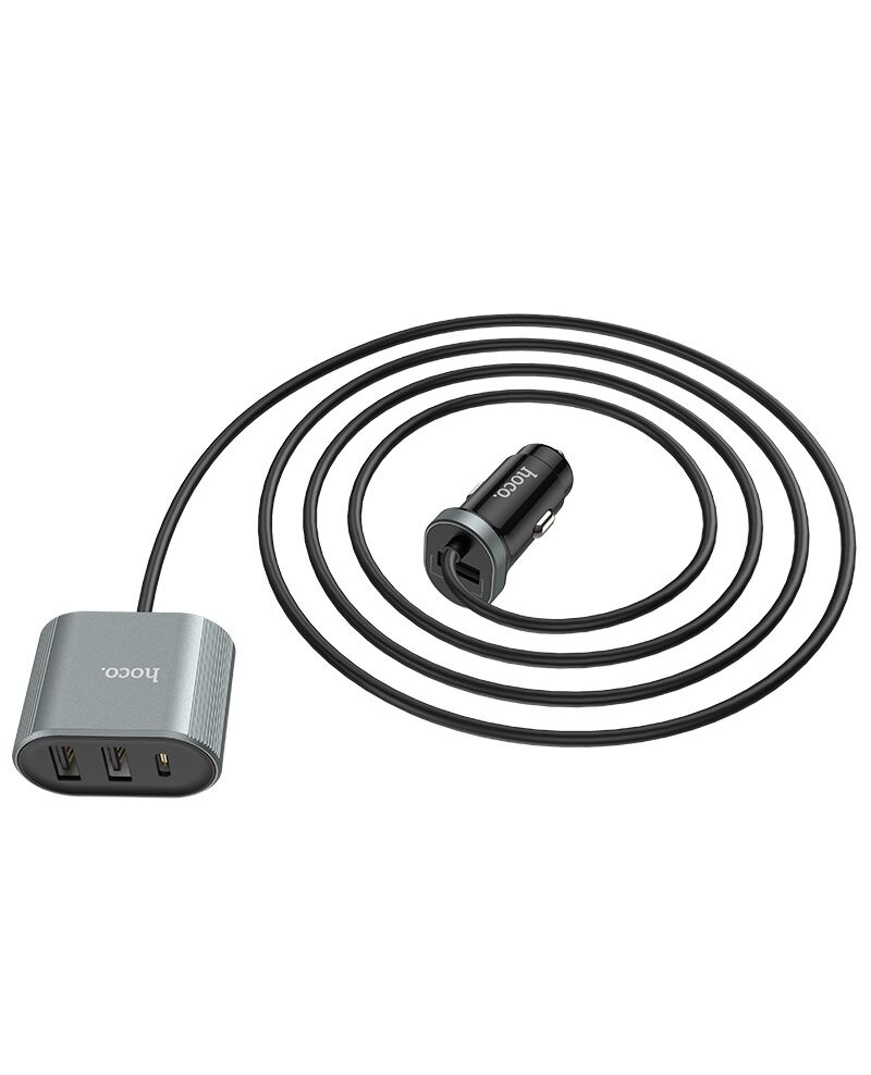 HOCO - Z35 CAR CHARGER WITH EXTENDER 3 USB AND TYPE C 42W BLACK