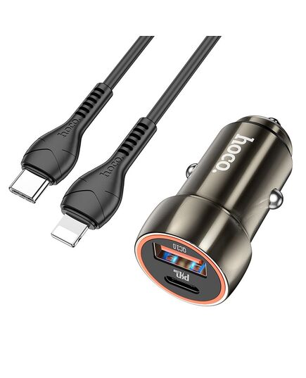 HOCO - Z46 car charger Type C + USB QC3.0 Power Delivery 20W with cable Lightning metal gray