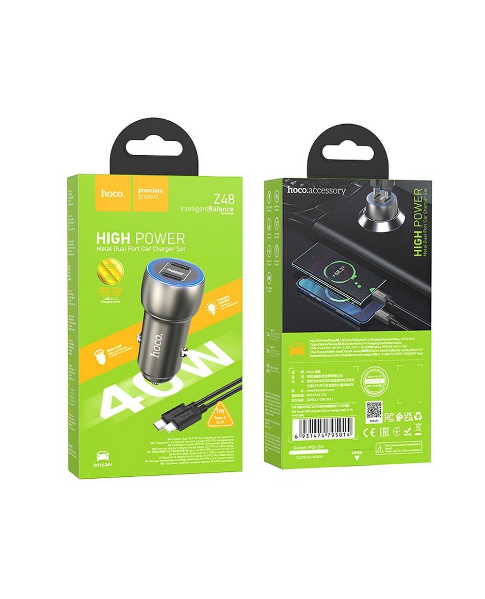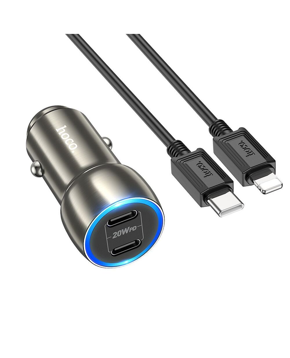 HOCO - Z48 car charger 2x Type C + cable Type C to iPhone Lightning 8-pin PD 40W metal gray