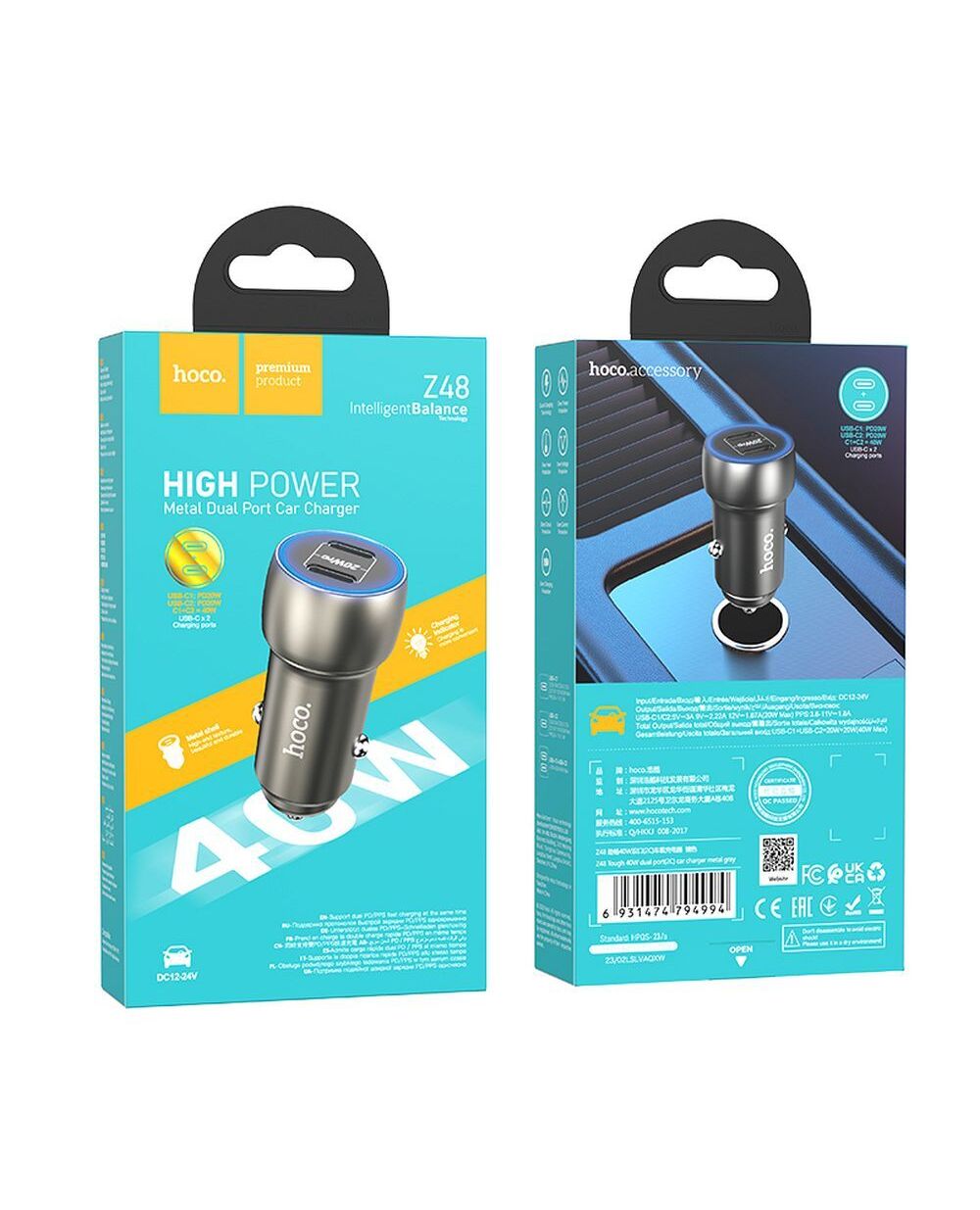 HOCO - Z48 car charger 2x Type C PD 40W metal gray