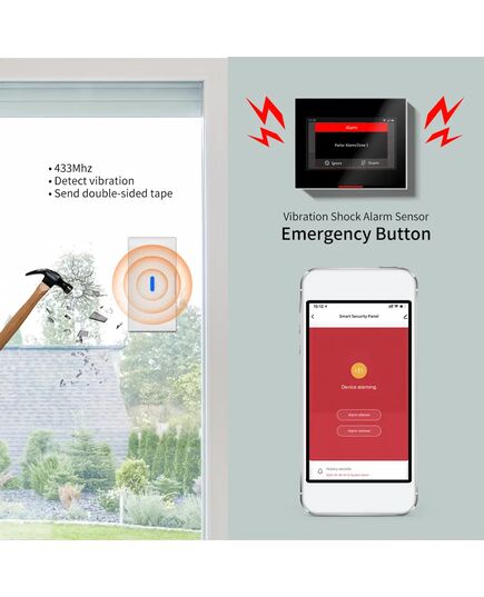 Ο ασύρματος ανιχνευτής θραύσης κρυστάλλων τοποθετείται εύκολα σε γυάλινες πόρτες και τζάμια. Ανιχνεύει τους κραδασμούς σε περίπτωση θραύσης της γυάλινης πόρτας/τζαμιού και στέλνει ειδοποίηση στο κεντρικό σύστημα συναγερμού. Επιπλέον, ενσωματώνει κρυφό κουμπί πανικού για περιπτώσεις έκτακτης ανάγκης.