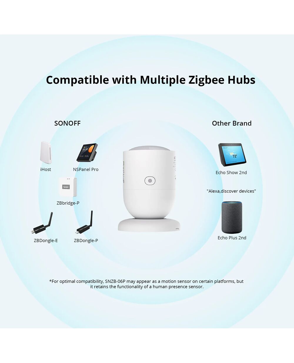 Υποστηρίζει πρωτόκολλο σύνδεσης ZigBee 3.0 και είναι συμβατός με τα hubs ZigBee Bridge/Pro, NSPanel Pro, ZBDongle-P/E, Echo Show 2nd, Echo Plus 2nd κ.α.