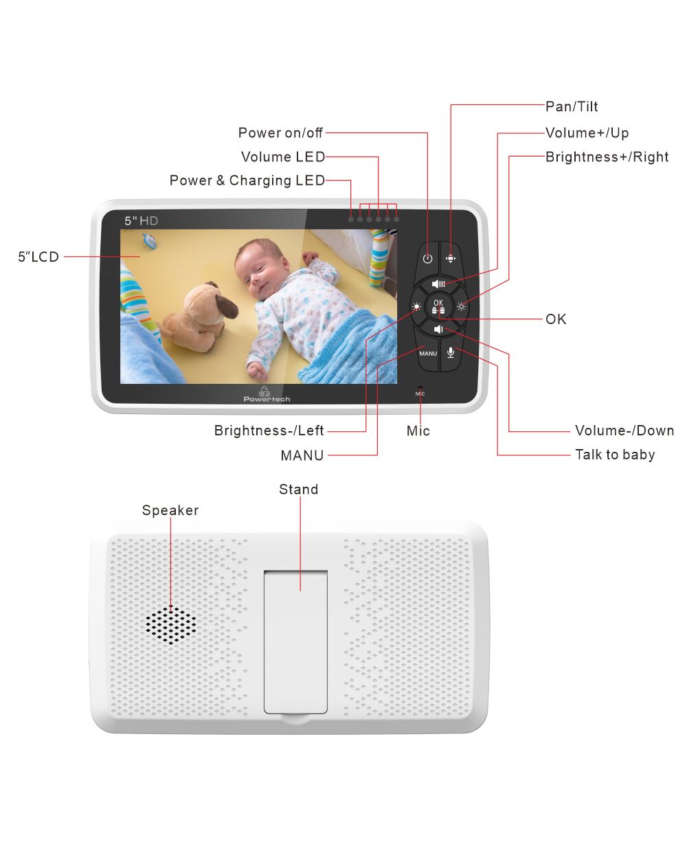 POWERTECH ενδοεπικοινωνία μωρού PT-1188 με κάμερα & οθόνη 5", 720p, PTZ