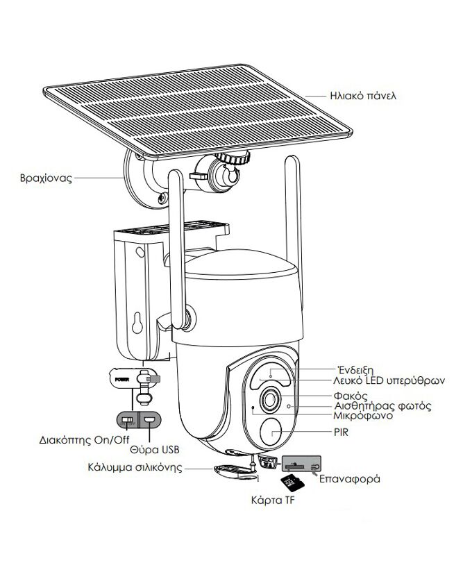 Η ασύρματη ηλιακή smart κάμερα της Powertech καταγράφει κάθε κίνηση σε καθαρή, υψηλής ευκρίνειας ανάλυση, με έγχρωμη εικόνα, ακόμη και κατά την διάρκεια της νύχτας. Διαθέτει 2.8mm φακό με αισθητήρα ανάλυσης 4MP και υποστηρίζει PTZ λειτουργία.