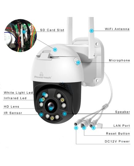 Η smart κάμερα ασφαλείας PT-1086 της Powertech, καταγράφει κάθε κίνηση σε καθαρή, υψηλής ευκρίνειας ανάλυση, με έγχρωμη εικόνα, ακόμη και κατά την διάρκεια της νύχτας. Διαθέτει φακό 3.6mm, αισθητήρα ανάλυσης 4MP και υποστηρίζει 4x ψηφιακό zoom αλλά και PTZ λειτουργία.